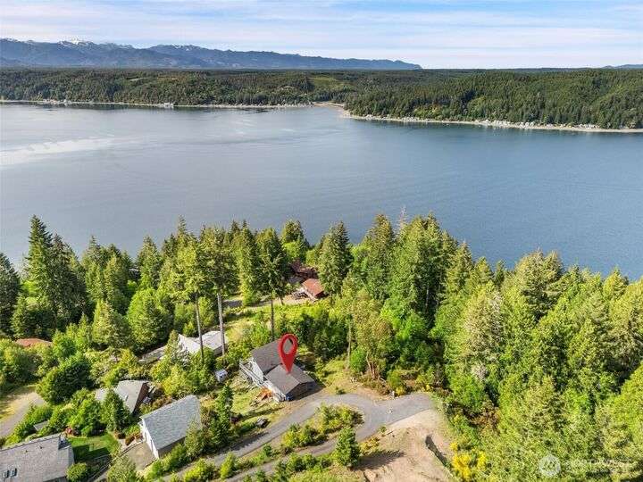 Price reduced on this Olympic Vista gem! Enjoy breathtaking Hood Canal and Olympic Mountain views from every level of this home with great decks on every level. The main floor has your kitchen and great indoor/outdoor entertaining spaces with amazing views and a freshly updated bathroom with a laundry chute. The upper level is an expansive loft space that could be used as a fabulous office or bonus room. Lower level has other bedrooms to choose from and a more private deck with a hot tub. You also have a fenced yard with fruit trees, garden space, and a detached 624 sq ft garage. Homeowners in Olympic Vista enjoy private waterfront access that includes a clubhouse and boat launch. Close to Alderbrook. This is Northwest living at its finest!