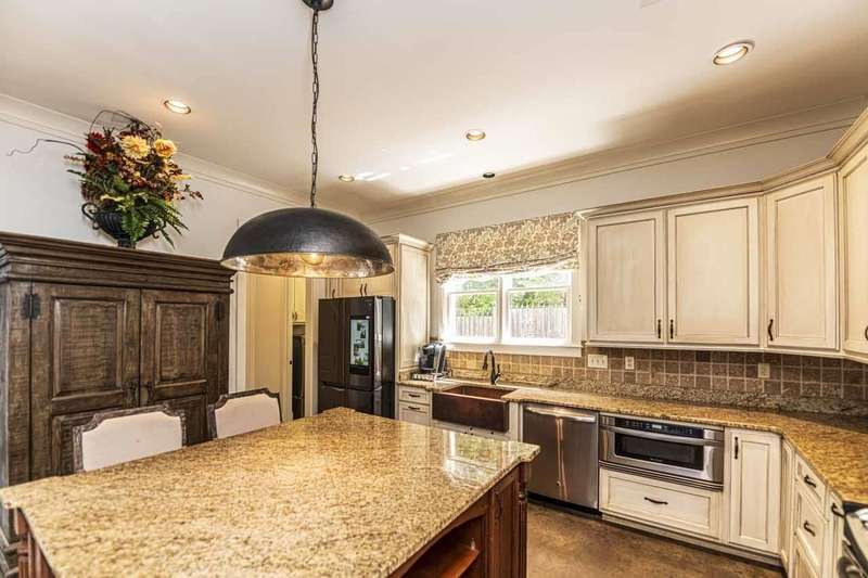 Discover timeless elegance and modern comfort in the is gated, Dickens-built is a luxury Lavelle Walker designed home. Nestled on the desirable E. side of Collierville Sq, this stunning property includes a separate 1000 sf guest house (custom built 2017), offering 2br, 1 ba with custom stained scored concrete floors. The main residence features 4 spacious bedrooms (2 primary suites) 3.5 ba, showcasing exquisite details throughout-cathedral vaulted ceilings with shiplap finishes, a grand front porch and a serene-screened side porch. The home is fully irrigated and surrounded by an 8' wrought iron fence with cedar posts, sitting on over half an acre. New HVAC installed 2024. Upstairs carpet being replace 9/4/25. Great investment opportunity to rent out guest house, in law house etc... All this, just a short stroll from the charm, shops and dining of historic Collierville Sq. A rare opportunity to own luxury and location in one of the most sought-after neighborhoods.