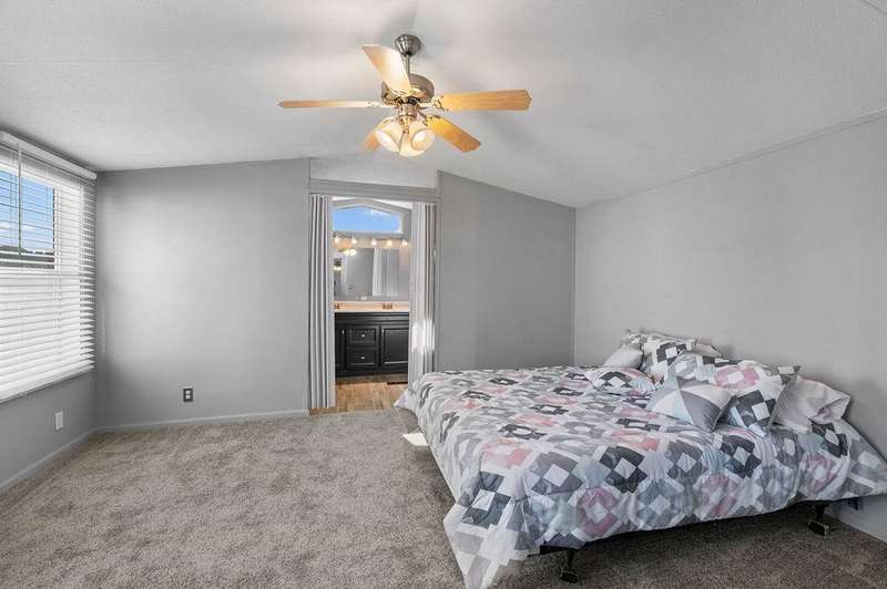 Perfect for anyone looking for an investment property, or a great place to live, this clean and neat 3 bedroom, 2 bath mobile home on its own lot in Cottonwood Meadows is a MUST SEE! The recently remodeled home has brand new flooring, carpet and paint throughout and includes a large living area and open kitchen/eating area. Split bedrooms provide privacy. The primary suite has lots of storage and includes a large private bath. The front of the unit faces the local park, and Nisley Elementary School is in back making this a nice quiet setting. A covered carport and outside storage shed, along with newly xeriscaped landscaping complete this well-kept home.