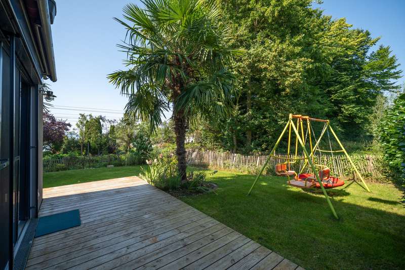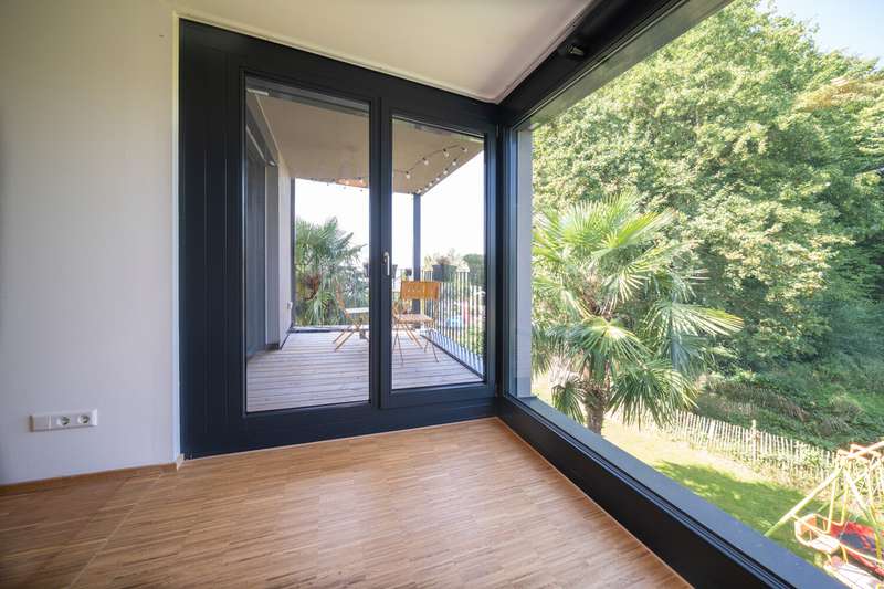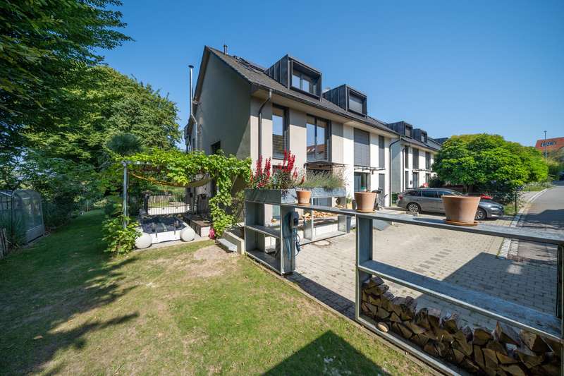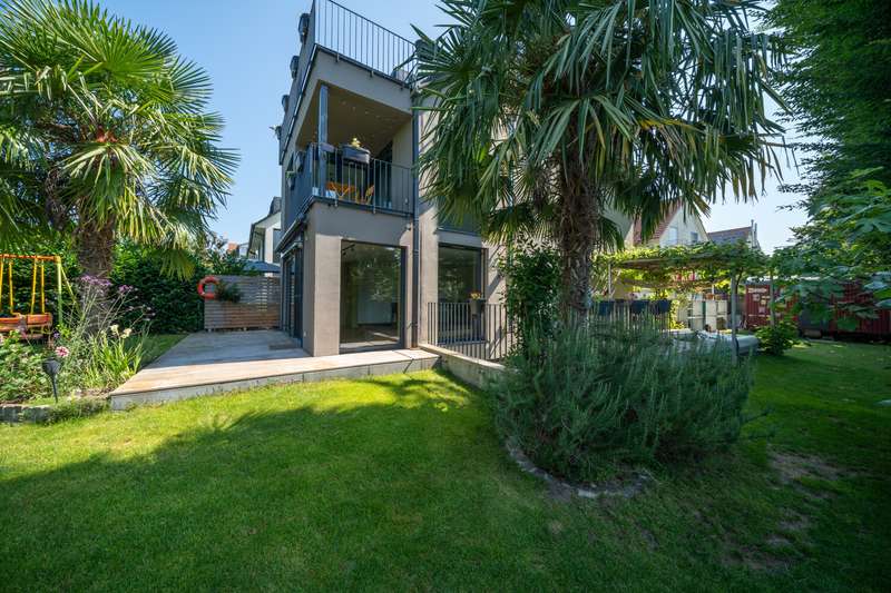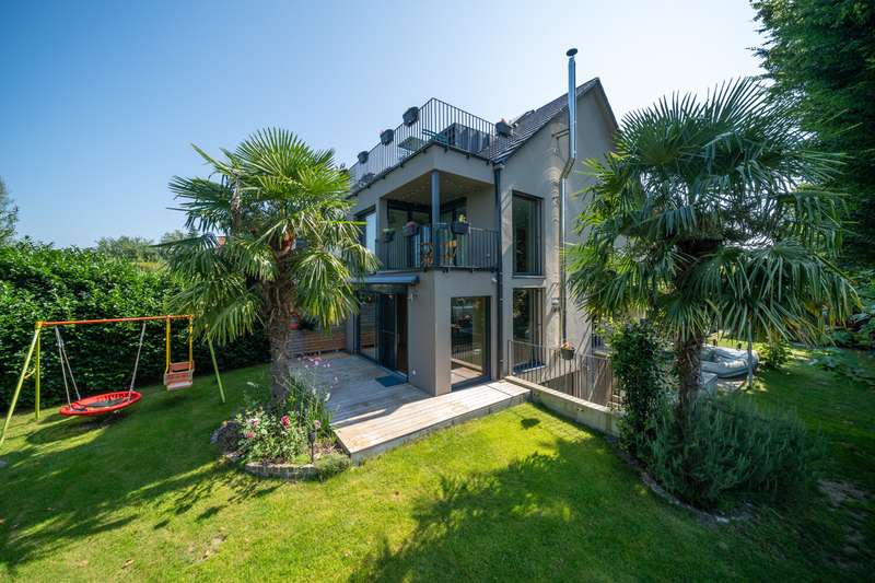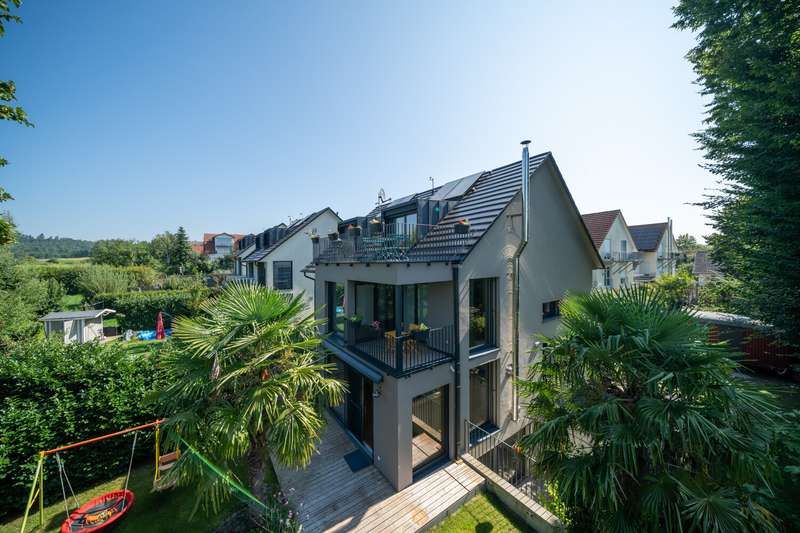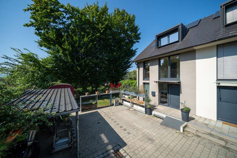 Property description: Welcome to your new home! This high-quality semi-detached house in Allensbach not only impresses with its sought-after location in the second row of Lake Constance, but also with its modern fittings and breathtaking, unobstructed views of the countryside - including a lake view and a picturesque stream. For sale is an impressive semi-detached house that was built in 2015 and extended in 2022 with approx. 35.6 sqm. This beautiful property is in mint condition and now has a generous living space of approx. 215.6 m² and extends on a plot of approx. 464 m². The layout of the house offers 5.5 rooms, including three spacious bedrooms and three modern bathrooms equipped with high-quality fittings. The property is characterized by bright and generously proportioned living spaces that create an inviting ambience. The open-plan design allows for flexible usage options and creates a pleasant living atmosphere. The numerous floor-to-ceiling windows allow you to enjoy a wonderful view of the greenery and the nearby lake. Special features include three cozy sun terraces, each facing south or west, as well as the roof terrace. They offer breathtaking views of the lake as well as ample space for socializing outdoors. A hot tub has been prepared in the property's basement courtyard, offering the opportunity to create your own little wellness retreat at home. An additional highlight is the granny apartment in the basement. This is ideal as a guest area or for renting out and thus offers a wide range of possible uses. The property meets the KfW-60 standard and is therefore energy-efficient and environmentally friendly. The underfloor heating provides cozy warmth in all rooms and contributes to a high level of living comfort. The location of the semi-detached house combines a quiet environment with good connections and offers numerous leisure opportunities. There are also two parking spaces, making it much easier to find a parking space. As a highlight, there is also a garden shed or construction trailer with built-in electricity on the property. Another highlight is the walking distance to the lake - you can be at the lake in just two minutes and can enjoy a wide range of water sports. This as-new semi-detached house not only offers contemporary living in a modern property, but also the opportunity to arrive in a cozy home that has been designed to be both future-proof and energy-efficient. Take the opportunity to view this first-class home and see its benefits for yourself. A viewing is worthwhile to see all the advantages of this property in person. Contact us for more information or to arrange a viewing.