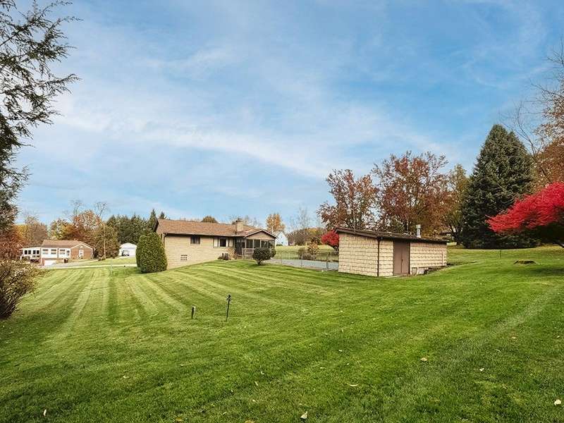 A most meticulously cared-for home! Think Mid-Century Mod meets Glam! This 3-BDR, 3-BA beauty opens w/a stunning entry and dramatic raised ceiling in Living/Dining areas. Natural light filled!! Terrific sight lines! Thoughtfully updated Kitchen, blends style & function seamlessly, w/beautiful, plentiful granite counter tops and Eat-In space. Finished Lower Level offers a spacious but cozy Family Room/Den w/Gas Fireplace & Wet Bar ? perfect for entertaining! You'll also find a lovely Laundry Rm (yes, lovely + organized storage!), and Bonus Rm craft/tool/seasonal storage, and access to integral 2-Car GAR. Move from the Sunroom to your private backyard oasis: an in-ground Swimming Pool w/Pool House. Rear of property lined by woods and neighboring homes are well-positioned away, making this feel like you're on a non-stop secret vacation. Apollo Ridge SD / Minutes fr town!Natural light filled interior, updates, and level of maintenance are evident. This home will have you swooning, too!
