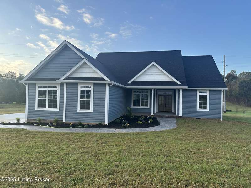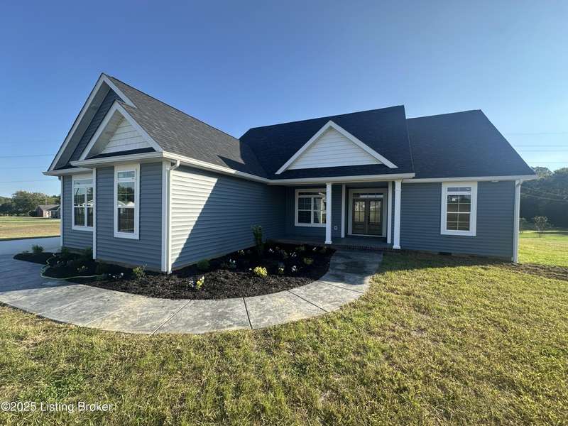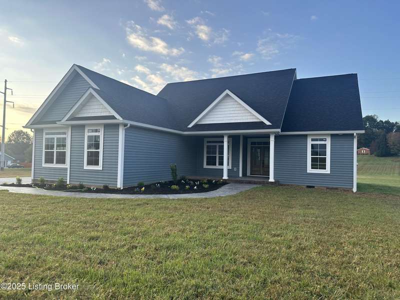 Welcome to this beautifully crafted 3-bedroom, 2-bath home offering 1,800 square feet of thoughtfully designed living space. Perfectly situated on a picturesque 1.17-acre lot, this property provides both privacy and scenic views that can be enjoyed from the inviting covered front and back porches. Step inside to find engineered hardwood flooring throughout and an open-concept layout ideal for both everyday living and entertaining. The split-bedroom floorplan ensures privacy, with the spacious primary suite featuring two walk-in closets and a luxurious custom tile shower. The heart of the home is the gourmet kitchen, complete with high-end finishes, spacious pantry, and plenty of space for gathering. A stunning stone fireplace with a solid wood mantle anchors the living area, adding warmth and character. Whether you're sipping coffee while watching the sunrise or hosting guests for a cozy evening in, this home blends comfort, style, and functionality in every detail.