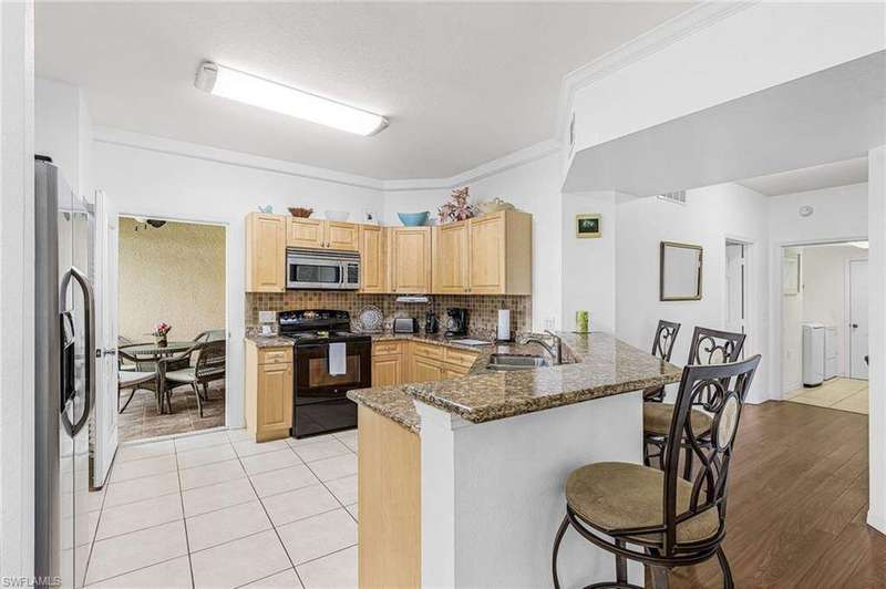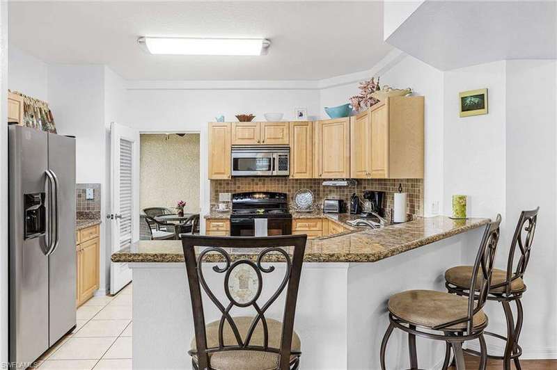 Welcome to Concordia! This spacious 3-bedroom, 2-bathroom first-floor condo offers a relaxing lake view and an open great-room concept in one of the most desirable communities in NE Cape Coral. Best of all, it's not located in a flood zone, giving you peace of mind and added savings with no flood insurance required. The kitchen features granite countertops, plenty of storage, and a dining bar, flowing seamlessly into the living area. Just off the kitchen, a private lanai overlooks the sparkling lake, perfect for enjoying your morning coffee or evening cocktails while taking in the view. A rare find, this condo also includes a two-car attached garage, adding convenience and value. The Concordia community is known for its beautiful resort-style amenities, including a gorgeous pool and spa, a well-equipped fitness center, scenic walking trails, and a welcoming, friendly atmosphere. With very low HOA fees and a location just minutes from shopping, dining, and everyday conveniences, this home offers the perfect blend of comfort and lifestyle. Don't miss your chance to live in one of Cape Coral's most sought-after communities. Schedule your private tour today!