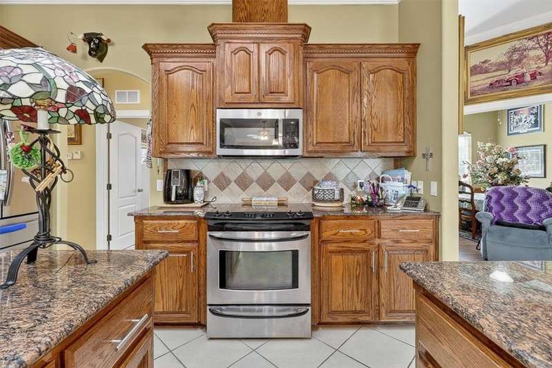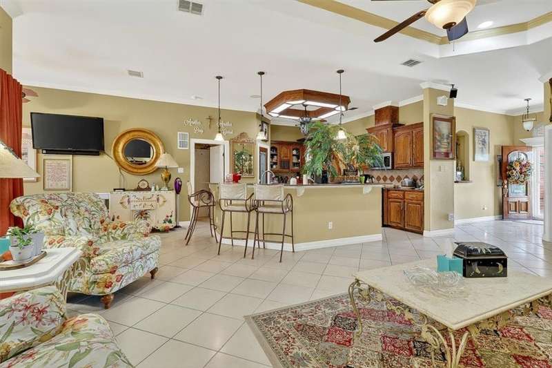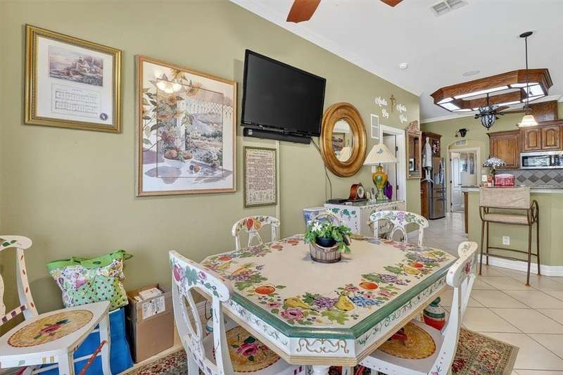 You may feel as if you are in an art gallery, but look past the beautiful things and you'll appreciate the custom wood detailing and spacious open concept floor plan of this home. Corner lot compliments the classic design and well landscaped property. Large living/kitchen with island and a great serving bar, 2 separate dining areas but one with glass doors could be a great office. Split bedroom plan, enclosed patio, back yard features paved areas, gazebo enclosed hot tub, storage or garden shed and so much more. Be sure to see this one of a kind property.