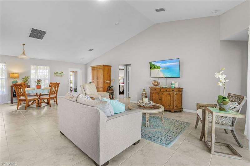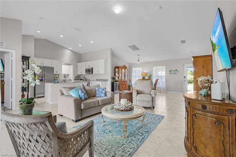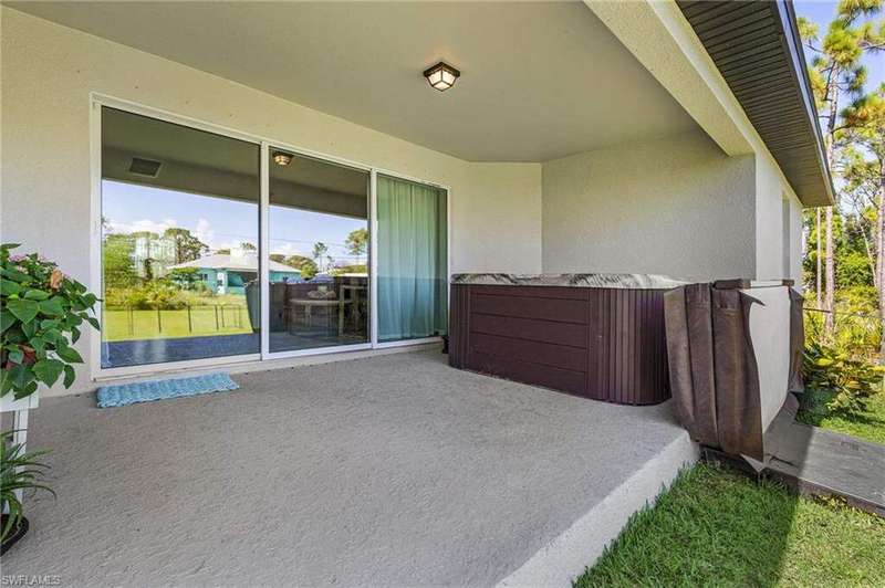 This 2022 CBS home had no water inside from any Hurricanes! Looking for an almost new beautiful home with peace and quiet in a lovely neighborhood where you can walk, and ride bikes, with a bike path that extends from Bokeelia in the North to St. James City in the South? Then look no further With 4 bedrooms, there is still plenty of room for family/friends to visit, plus have an office! The kitchen boasts granite counters, stainless appliances, and a pantry. The microwave and range were upgraded, along with a new washer and dryer. Enjoy the hot tub on the patio and watch the stars in the darkness of a Pine Island evening. There is plenty of room for a pool with this third-of-an-acre lot! And, there is plenty of storage in the 10'x16' shed in the backyard. Tropical Homesites is located near restaurants, shopping, and boat ramps, and even has a Lee County Park with water access. There is a very small canal launch that may accommodate very shallow boats. Bring a picnic and your kayak or paddleboard, and enjoy the shallow peaceful waters of Matlacha Pass in the Lee County Park.