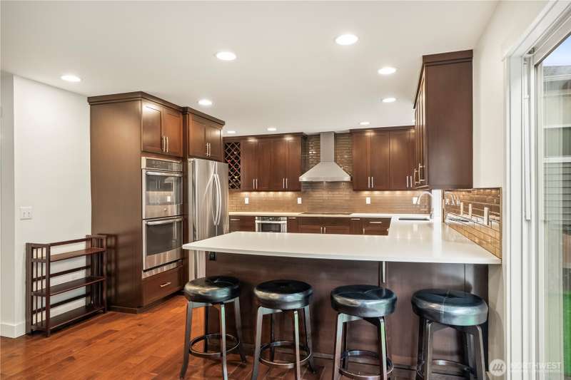 Stunning 4-bedroom + loft home tucked along a peaceful street in Redmond Ridge. Bright, airy, and beautifully updated, this home features tall ceilings, gorgeous hardwoods, and an effortless flow between the living, dining, and family rooms. The chef’s kitchen is designed for function with stainless steel appliances, a large pantry, and generous cabinetry. Upstairs, every bedroom is spacious and comfortable—three even feature walk-in closets! Primary suite is private with a modern ensuite and luxurious walk-in shower. Step outside to a fully fenced, turfed backyard with a patio perfect for entertaining. With a newer roof (2022), gutters (2024), and parks, trails, and top-rated schools just steps away-this home truly captures Redmond living.