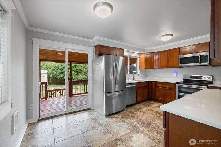 Ideal for those seeking both accessibility and comfort, this 4-bedroom, 2-bath Tacoma home is just minutes from I-5 and only 30 minutes to Seattle and 10 from JBLM. Step outside to a spacious deck—perfect for relaxing, entertaining, listening to the rain, or hosting summer BBQs. Inside, enjoy peace of mind with a brand-new water heater, wall heaters, and microwave. The functional layout offers plenty of room for everyone, with convenience to nearby shopping, dining, parks, and schools. NO HOA !