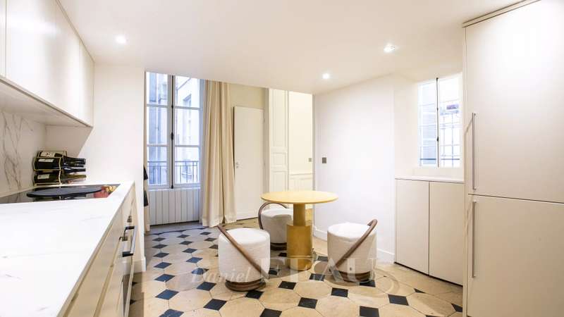 Located in the immediate vicinity of the Odéon theater, in a stone building with an elevator, this elegant apartment on the main floor charms with its charm and privileged location. It offers a large, light-filled living room, enhanced by high ceilings, creating a living space that is both refined and warm. The kitchen is separate and discreet. There are three bedrooms, each with its own bathroom. The address is particularly sought-after, enjoying a prestigious setting in the heart of the Left Bank, a stone's throw from cafés, bookshops, and the Luxembourg Gardens.
