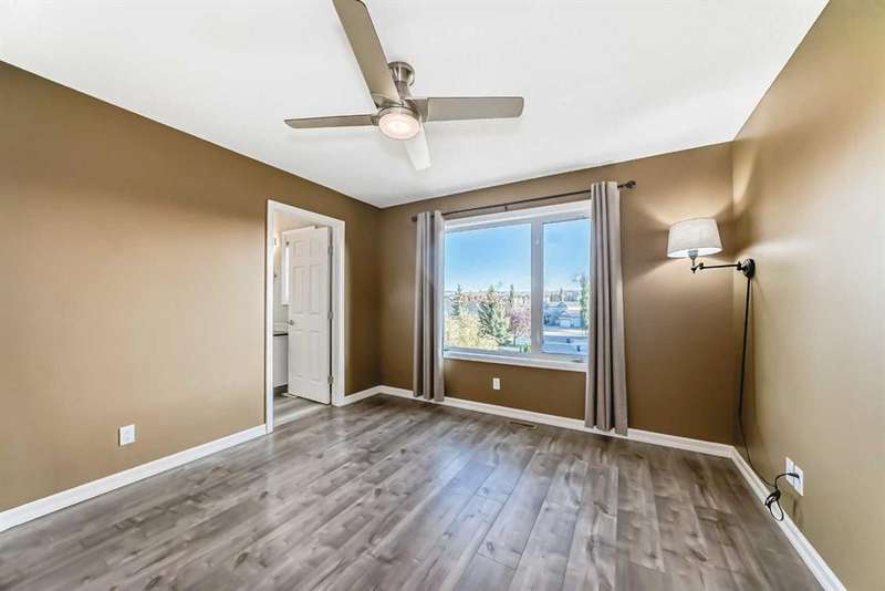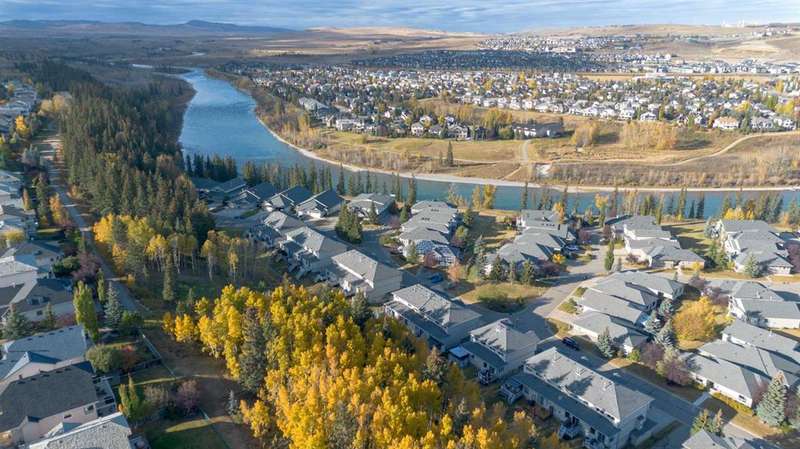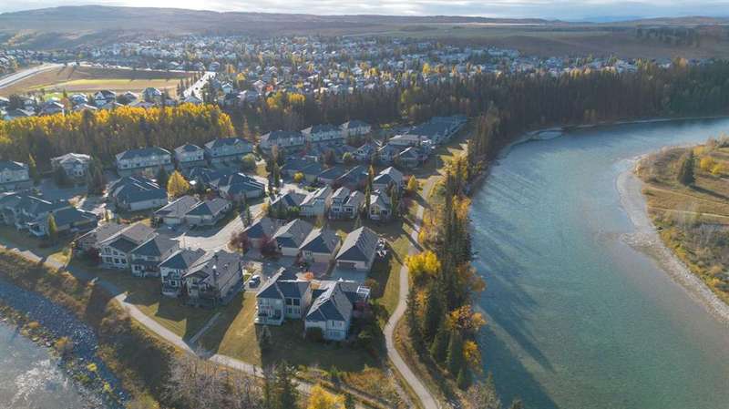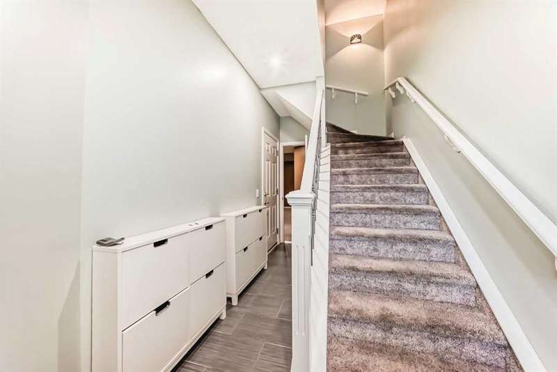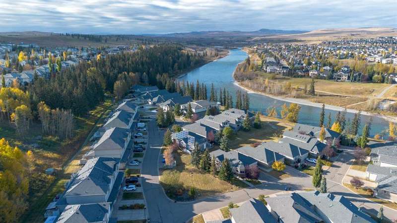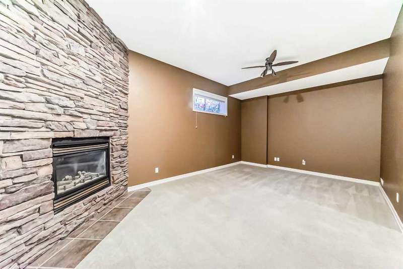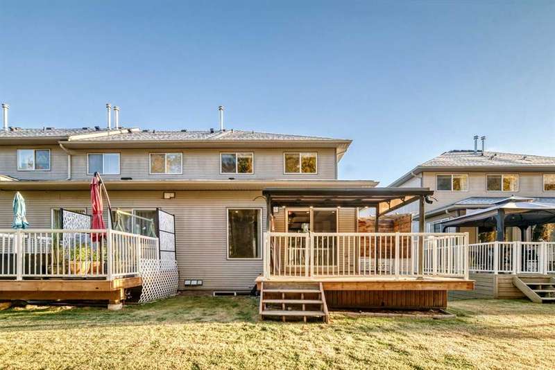 Stunning End Unit Townhouse in Sought-After Crawford Ranch! Welcome to this beautifully finished 3-bedroom, 3.5-bathroom townhouse tucked away in the peaceful, no-through community of Crawford Ranch. Surrounded by mature trees and backing onto a private environmental reserve, this home offers the perfect blend of nature and convenience—just steps from walking trails, Jumping Pound Creek, and the Bow River, yet minutes from all that Cochrane has to offer. Inside, you'll find a spacious and functional layout with thoughtful upgrades throughout. The entry-level features a large family room with a cozy gas fireplace and a full 4-piece bathroom—ideal as a private space for teenagers, guests, or multi-generational living. Upstairs, the main living area showcases a stylish kitchen with granite countertops, stainless steel appliances, and a central island perfect for entertaining. The open-concept dining room features a second gas fireplace and opens onto a private deck with serene views of the natural surroundings. Additionally, there is a beautiful main floor living area and conveniently located half bathroom. The upper level offers a luxurious primary suite complete with an upgraded ensuite, two additional bedrooms, a full bathroom, and convenient upstairs laundry. Tastefully designed and surrounded by nature, this home truly has it all—space, style, comfort, and an unbeatable location. Don’t miss your chance to call Crawford Ranch home!