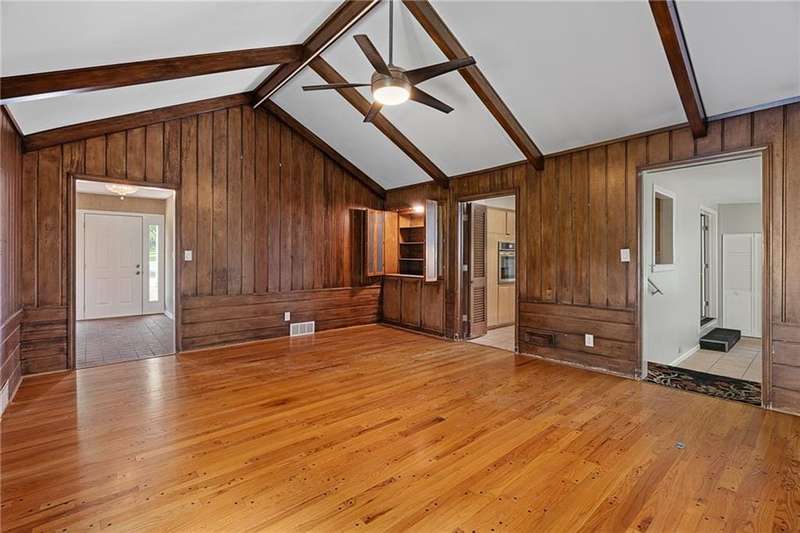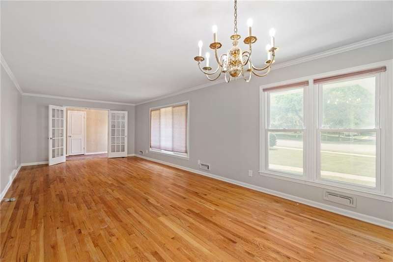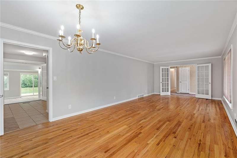 Enjoy the ease of one-level living in this three bedroom, two bath ranch featuring freshly refinished hardwood floors and fresh paint throughout. The light filled living and dining room combo offers a welcoming space to entertain, while the vaulted ceiling family room creates a cozy atmosphere with a fireplace flanked by built-in bookshelves. Step in the all season room at the back of the home--perfect for relaxing year round and enjoying the the large backyard. The full basement is ready for your imagination--finish it for additional living space, a home gym, or hobby area. Ideally located near Corinth Square and Ranchmart Center with easy access to shopping, dining and highways. A wonderful opportunity in a highly sought after neighborhood. Some updates and repairs are needed but with the a great layout, this home is ready to be transformed into your dream home.
