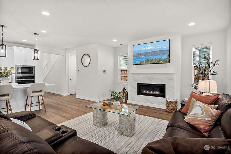 **APPROVED SHORT SALE** Explore Richmond American Laurel Plan at Tyee Ridge! Covered Entry opens to spacious entry w/LVP floors flow effortlessly throughout. Gourmet kitchen: SS Appliances, Lg walk-in pantry, 10ft quartz Island w/Breakfast bar overlooks living rm w/cozy gas FP w/quartz surround. Effortless in/outdoor living; sliding door opens from dining rm to pine-covered entertainment patio. Retreat to Primary Suite w/Lg 5-pc bath endowed in quartz & black powder coated finishes w/Walk-in-closet. Bdrms & Utility rm down the hall from Bonus Rm/opt. 4th bdrm or Office! High-Speed Internet, 2car gar, HEAT PUMP & fully fenced! Enjoy spectacular Mt Rainier views. Tehaleh’s walking trails, parks, clubhouse & dining.