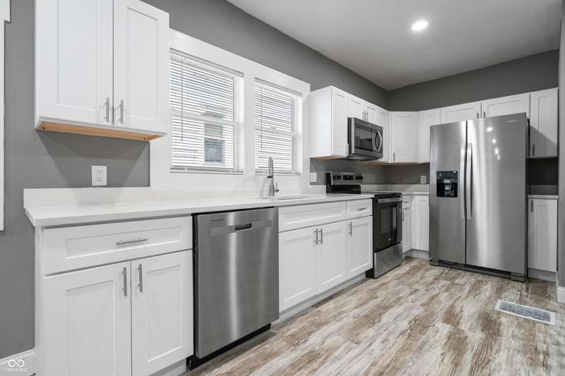 Move right in to this renovated 3 bedroom home with 2 full bathrooms and a finished basement! Enjoy the covered porch and fenced backyard with this Near East Side home offering many updates inside and out. Recent roof, siding, windows, and electrical service. The new kitchen features soft close cabinetry, Quartz countertops, and stainless steel appliances. The lower level features an Owner's Suite, full bathroom, plus a walk-in closet. Updated plumbing and electrical, bathrooms, lighting, flooring, and paint. New Water Heater and AC. Great eateries nearby including Beholder, Sam's Square Pie, and Tic-Tock Lounge. Convenient to Brookside Park, Factory Arts District, Mass Ave, the Monon Trail.