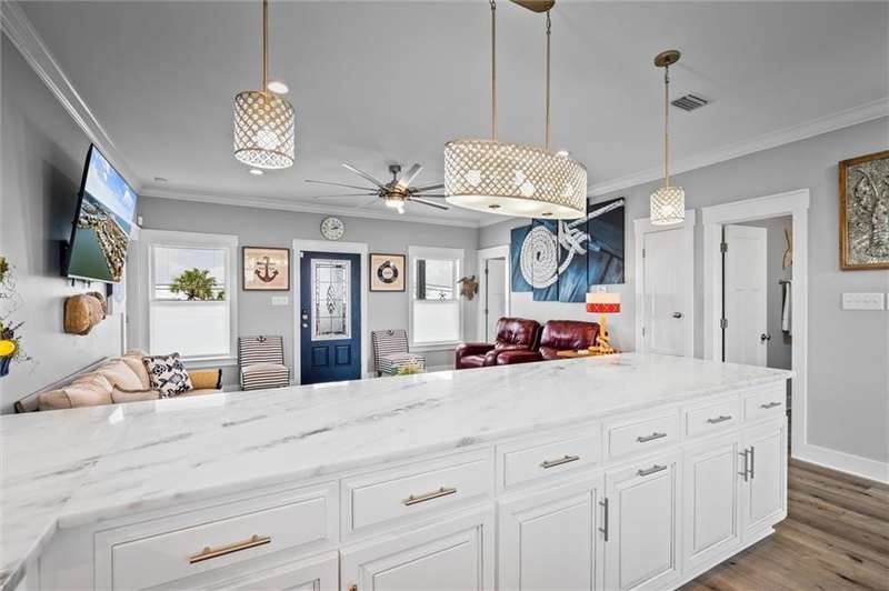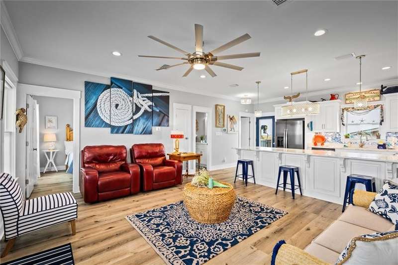 Turnkey Beach Home with water views from every room in Dauphin Island, AL! Enjoy coastal living at its finest in this beautifully furnished beach house on Dauphin Island, offering water views from every room. Whether you're relaxing indoors or lounging on one of the porches, the tranquil sights and sounds of the Gulf and Bay create a peaceful backdrop to everyday life. This rental is being sold fully furnished and features thoughtful upgrades for both comfort and convenience. A whole-house generator and a cargo lift make it easy to manage groceries, small furniture, or assist family members and friends with health concerns. The home is Gold Fortified with a durable metal roof, offering significant discounts on homeowners' insurance. Inside, you'll find a well-appointed interior with stone countertops in the kitchen and baths, white cabinetry, stainless steel appliances, and luxury vinyl plank flooring throughout. High-quality fixtures and finishes add to the modern, coastal charm. Downstairs, a 396 sf. heated and cooled bonus room with a mini-split system provides the perfect space for entertaining or relaxing after a day on the beach. Two roll-up garage doors offer easy access and ample storage for golf carts, bikes, kayaks, paddle boards, and all your fishing gear. Square footage does not include the room below. This is more than just a beach house, it's a fully equipped coastal retreat. Contact us today for more information on this incredible property!**Buyer or buyer's agent to verify all information, including local zoning and regulations, HOA covenants and deed restrictions. Listing brokerage and agent make no representation regarding the accuracy of listing statements.**