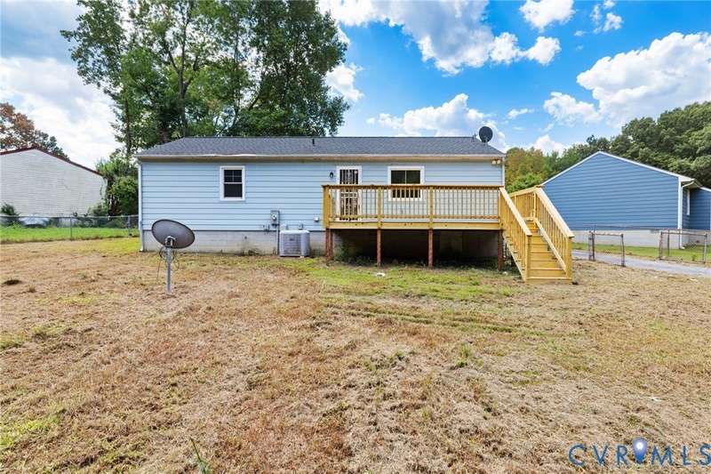 Newly Renovated Ranch in South Chesterfield! Welcome home to this beautifully updated ranch featuring 3 bedrooms, 2 full baths, and 1,056 sq. ft. of thoughtfully designed living space. Step inside to find new luxury vinyl plank flooring throughout and an expansive family room filled with natural light, perfect for everyday living and entertaining. The updated kitchen with all new appliances is a showstopper with modern cabinetry, tile backsplash, butcher block counters, recessed lighting, and a dining area that flows effortlessly into the main living spaces. A spacious laundry room offers convenience and direct access to the rear deck. The primary suite offers a private full bath with a tub/shower combo, while an additional full hall bath features a new walk-in shower and new vanity. The home boasts two additional bedrooms with oversized closets, recessed lighting, and LVP flooring. Step outside to enjoy the NEW rear deck overlooking a sprawling, .6 acre fenced-in backyard, perfect for gatherings, play, or pets. With its fresh renovations including NEW Roof, NEW Water Heater, NEW Windows and all NEW LVP flooring, this home is move-in ready and waiting for its next chapter!
