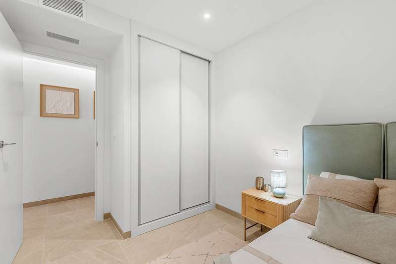 From apartments in Alicante for sale, daily conveniences are within short reach: supermarket 0.6 km, restaurants and cafés 0.8 km, pharmacy 1 km, sports center 1.4 km, health center 3.5 km, Orihuela 10 km, Guardamar beach 18 km, La Marquesa Golf 18 km, Torrevieja 21 km, Zenia Boulevard shopping 23 km, Alicante city 55 km, and Alicante Airport 56 km.
