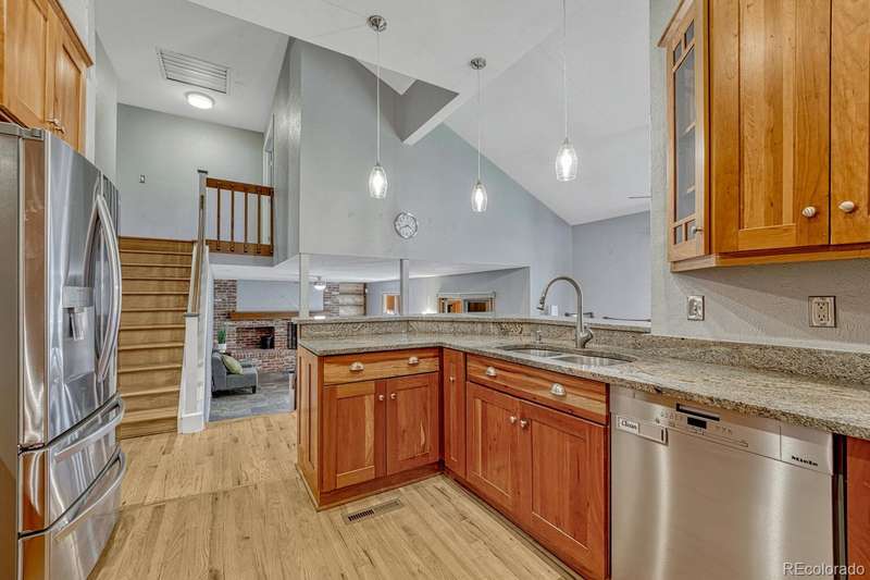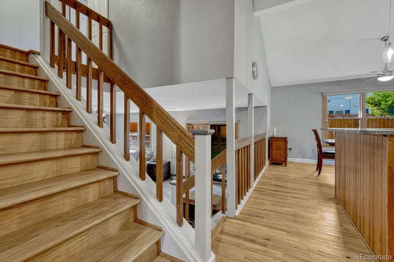 Welcome to the home you've been waiting for in the highly sought-after Foxridge neighborhood, located within the top-rated Cherry Creek School District! Don't miss this beautifully updated home on a corner lot, full of charm and modern touches throughout. Step inside and be greeted by a spacious, light-filled living room featuring vaulted ceilings and newly refinished hardwood floors. The adjoining formal dining room-also with gleaming hardwoods-is ideal for hosting family gatherings and celebrations. Take a look the updated kitchen boasting rich cherry cabinetry, granite countertops, stainless steel appliances, a wine refrigerator, and a light filled dining nook. Unwind in the inviting family room, complete with slate tile flooring and a cozy wood-burning fireplace-perfect for chilly Colorado evenings. On the lower level, you'll find a versatile 5th bedroom or in-law suite with convenient access to a ¾ bath, private patio, and a peaceful garden area. The washer and dryer (included) are also located on this level for added convenience. Retreat to the spacious primary suite, your personal haven after a long day. Enjoy your morning coffee or evening glass of wine on the private deck, and appreciate the updated en-suite bath with a walk-in closet. The upper level features hardwood flooring throughout and offers nicely sized secondary bedrooms. Finished basement with recreation room & exercise room or hobby room. Recent major updates include brand-new LP SmartSide engineered siding, plus certified roof, HVAC, and A/C inspections for peace of mind. Pella wood windows & sliding doors. Best of all, you're just a short walk to the Foxridge Club! Learn more at https://foxridgeclub.com.