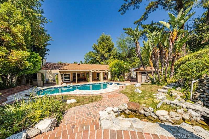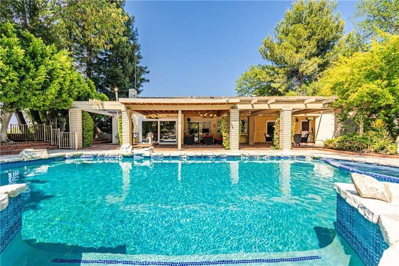 WOW !!!!!!! ALMOST 4800 SQUARE FEET HOUSE ON ALMOST HALF ACRE LOT!!!!!!! THIS HOUSE HAS A POOL, WATER POND, SMALL WATERFALL IN THE PERESTIGE AREA OF LAKE ENCINO WHERE YOU CAN HAVE THE OPTION OF A 24/7 SECURITY PATROL, AND A TENNIS COURT IN A ONE OF EXCLUSIVE HIGH END PART OF ENCINO FOR ONLY $10,900. WELCOME to this stunning Lake Encino home, where luxury meets serenity. As you step inside, you're greeted by the elegant marble flooring design in the foyer, setting the tone for the opulence that awaits. The spacious living room boasts high ceilings, a cozy fireplace, and a wet bar, perfect for entertaining. Large windows and sliding doors seamlessly blend indoor and outdoor living, offering breathtaking views of the lush green yard. The formal dining room is ideal for special occasions, while the huge family room with its own fireplace is where memories are made. Abundant natural light pours in through the expansive windows, complemented by recessed lighting that highlights the home's best features. Ample storage and closet space ensure a clutter-free lifestyle. The master suite featuring a remodeled bathroom with a designer marble shower, dual sinks, and a relaxing jacuzzi tub. The home's layout is thoughtfully designed, with three bedrooms downstairs, each with its own bathroom, and two bedrooms upstairs. The kitchen is a culinary haven, boasting crisp white cabinets, granite countertops, and plenty of space to prepare gourmet meals. But the true showstopper is the backyard oasis. The large flat yard is a resort-like haven, complete with a picturesque waterfall, beautifully landscaped gardens, and a spacious entertaining area. Imagine sipping coffee or enjoying a glass of wine while taking in the tranquil surroundings. The stone accents and walking path add a touch of whimsy, inviting you to explore and unwind in this serene paradise.