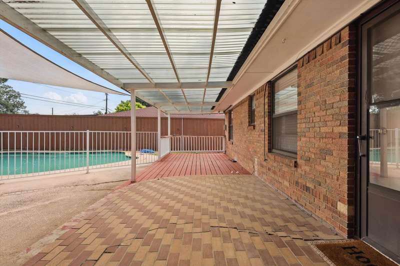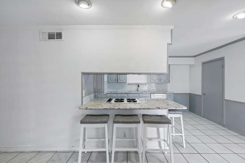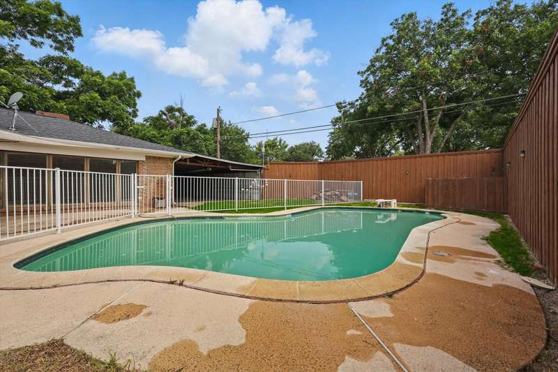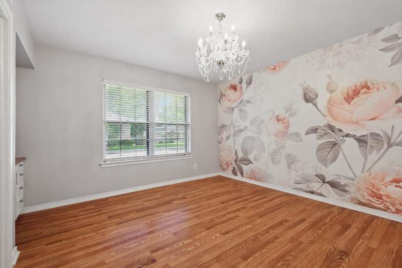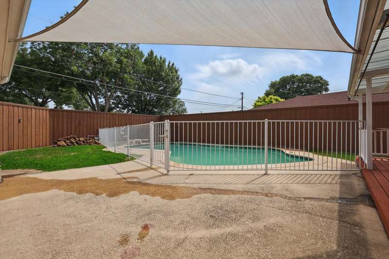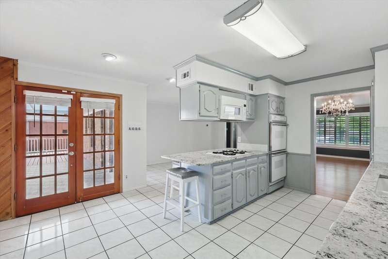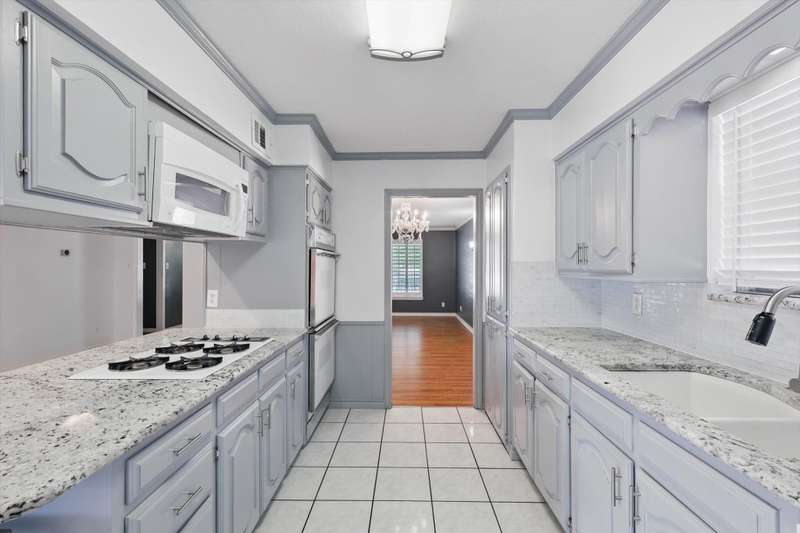 Step into timeless elegance with this three bedroom, two bath home. The kitchen is a true showstopper with crisp light grey cabinetry, granite countertops and gas cooktop. Enjoy seamless flow from the kitchen to the stylish living and dining areas, all bathed in natural light and highlighted by warm wood floors. The family room overlooks the covered patio and pool. Retreat to a generous primary suite with ensuite bath featuring dual vanities, large shower, and modern tile finishes. Secondary bedrooms offer comfort and style, with a secondary hall bath. Enjoy outdoor living with a spacious yard and patio area ready for gatherings. Located in a quiet, established neighborhood with easy access to shopping, dining, and major thoroughfares.