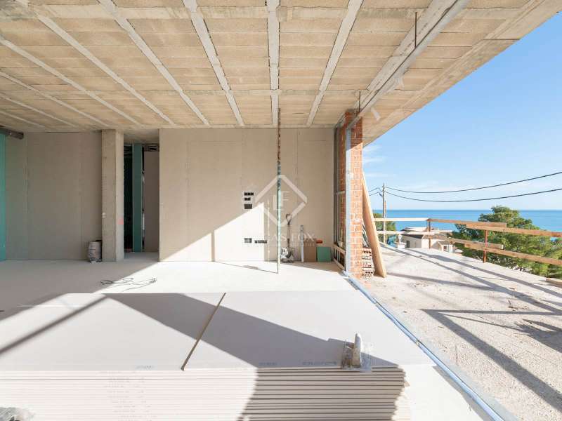 Lucas Fox presents this magnificent four-story villa with impressive views of the sea, thanks to its strategic location. It is located in the prestigious surroundings of the Garraf Natural Park, with views on one side of the lush natural area and on the other, of the sea. This designer villa , still under construction, offers the rare opportunity to adapt the details to the buyer's most demanding tastes. Stepping through the ground floor doors reveals a functional space housing a spacious garage and main entrance, anticipating the comfort and elegance that extends throughout each level. On the first floor, there is a multipurpose room that can be transformed into a private gym, a serene office or a games room, accompanied by a laundry room, a machine room and a full bathroom . The main floor offers a generous living room with a highly stylish dining room and an open kitchen, equipped with high-end appliances . A ensuite bedroom completes this floor. The main rooms have access to a large terrace with a swimming pool. From here, incredible panoramic views of the Mediterranean and the port are offered. On the highest floor , there are three bedrooms with private bathrooms, all with access to a terrace with the same impressive views. The floors of this magnificent property are connected with a designer staircase and a lift. In addition, behind the villa, there is a beautiful garden with views of the natural park. This space lends itself perfectly to outdoor gatherings, such as barbecues or any type of evening. Get in touch for more information.