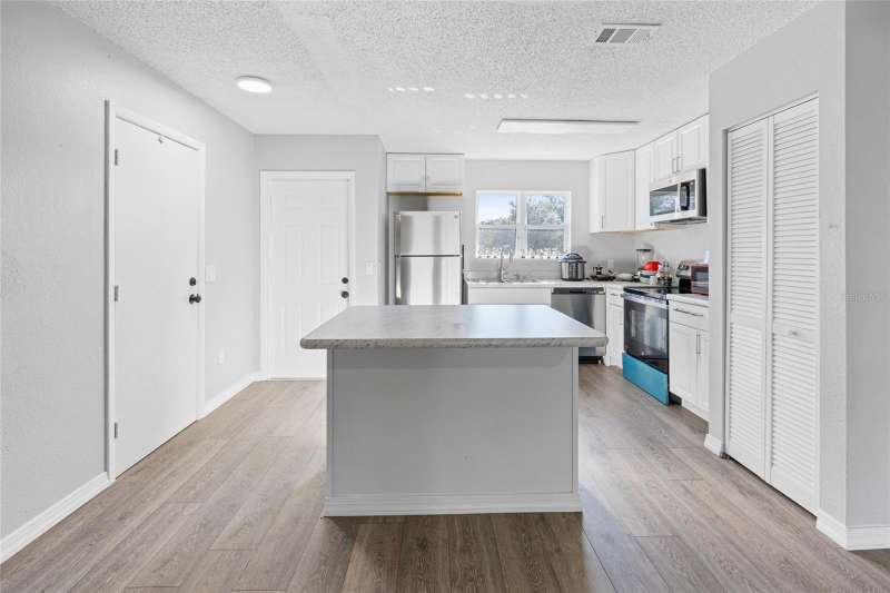 Welcome home! This beautifully updated 2-bedroonl. 2-bathroom residence perfectly combines modern upgrades with cozy charm. Step into the kitchen featuring brand-new cabinetry and sleek stainless-steel appliances. Both bathrooms have been fully renovated from top to bottom. showcasing contemporary finishes and stylish fixtures. Throughout the h01ne, modern vinyl flooring flows seamlessly—no carpet anywhere! Set on an oversized corner lot with mature trees. The open living area extends through sliding doors to a fenced backyard and inviting patio. offering both privacy and plenty of space for outdoor enjoyment. Major updates provide peace of mind. including a neve roof (April 2025). new A/C system, and all-neve ductwork'. Beyond the home itself. You’ll appreciate its prime location near local parks, walking trails, and nature areas—perfect for recreation and relaxation. Don't miss your chance to own this ready gem!
