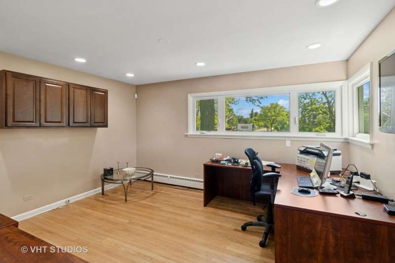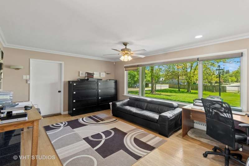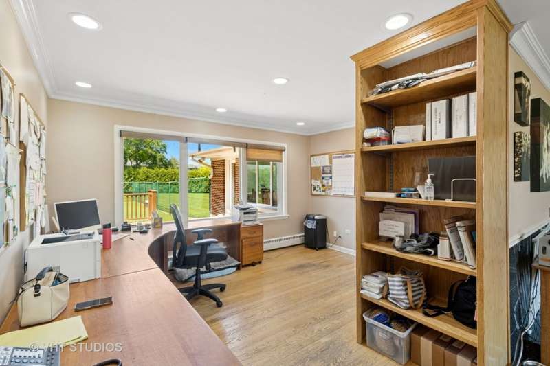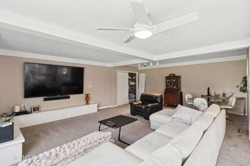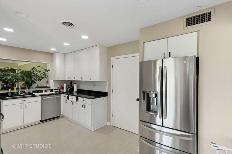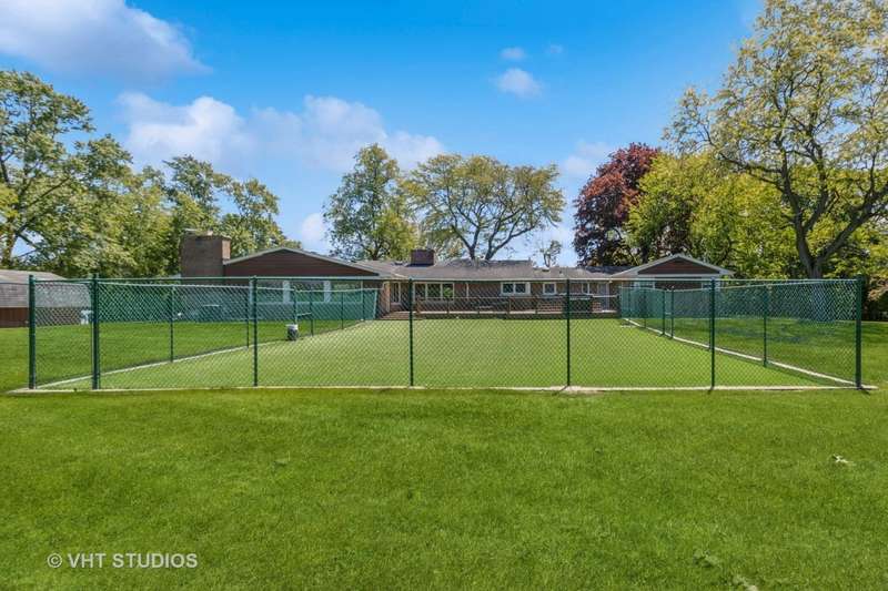 Tucked away on nearly 2 acres of peaceful, partially fenced land in Northbrook, this spacious 3 bedroom, 2.5 bathroom brick ranch offers space and comfort in a serene setting! Set far back from Willow Road, the home welcomes you with a sun-filled layout featuring a modern all-white kitchen with granite countertops and sleek black hardware. The massive primary suite includes a walk-in closet, an attached dressing room and a steam shower in the primary bathroom. Zoned heating for added comfort. Incredibly large deck overlooks the expansive yard for endless outdoor enjoyment with a unique fenced 80x40 area with Star Pro Greens Astro Turf which is easy to clean and phenomenal for dogs. A rare opportunity for space and tranquility, just minutes from town conveniences!