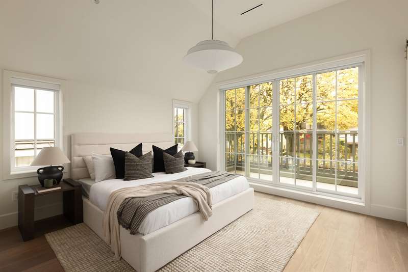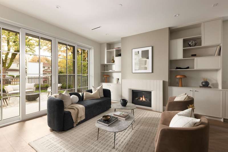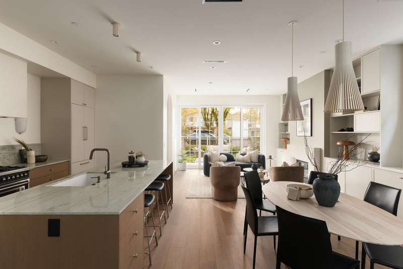 Designed by Jacqueline Taggart, this custom 2-storey home pairs timeless transitional architecture with elegant interiors & functional livability. Expansive main floor features 10ft ceilings, Esmeralda quartzite kitchens with Bertazzoni appliances, custom millwork throughout & lift-and-slide doors that lead to your private South-facing yard. Upstairs, vaulted 11'8 ceilings crown three spacious bedrooms. The primary bedroom is a generous 13'3 x 13'7 with a walk-in closet, sliding glass doors to your sunny balcony & a truly luxurious ensuite. Ample storage throughout the home highlighted by an epoxied crawlspace. With thoughtful planning, premium finishes, & a true single-family feel, this home elevates everyday comfort for families & down-sizers alike.