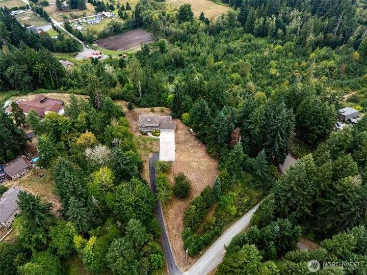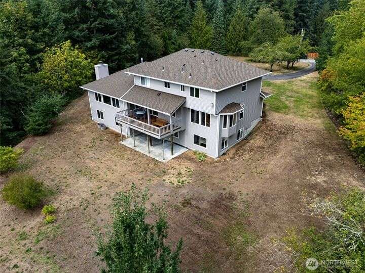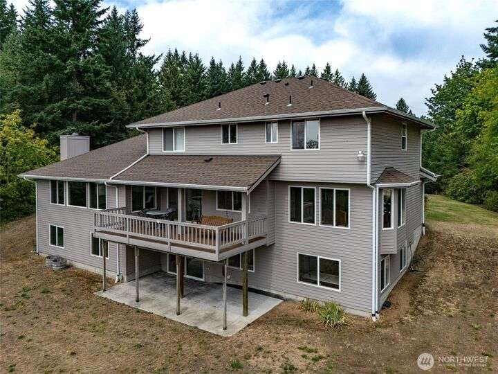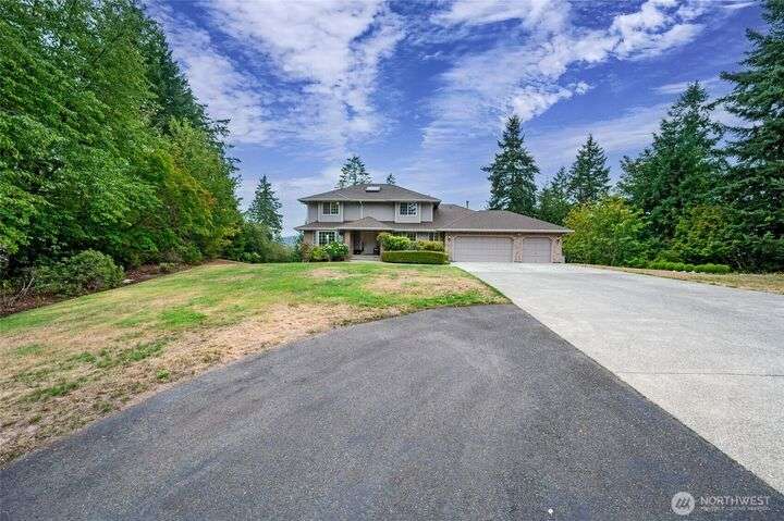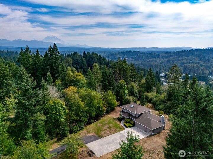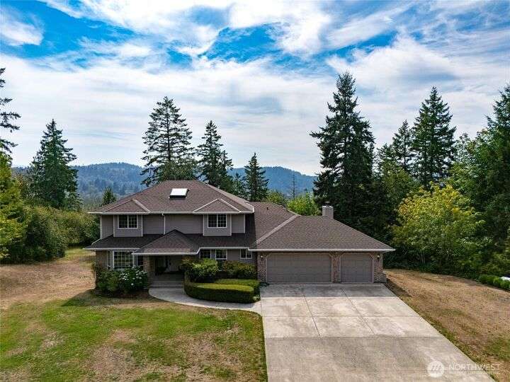 Custom 2-story w/fully finished basement on 18.56 acres. Potential to subdivide. Territorial view of mt & valley. Landscaped lawn, garden beds, large driveway w/room for RV parking & attached 3-car garage. Big deck off the kitchen to watch sunsets or the grazing deer nearby. Main floor includes living room, formal & informal dining, kitchen island cooktop, family room A/C, 1/2 bath, laundry room, den. Vaulted ceiling entry, hardwoods, & skylight lead upstairs to 3 bdrms, 2 baths including the primary suite w/jetted tub & walk-in closet. Downstairs has 2 extra finished rooms, 1 bath, rec room w/kitchenette & huge storage room. Propane gas FA, septic, public water in this comfortable country home, private, yet close to all amenities.