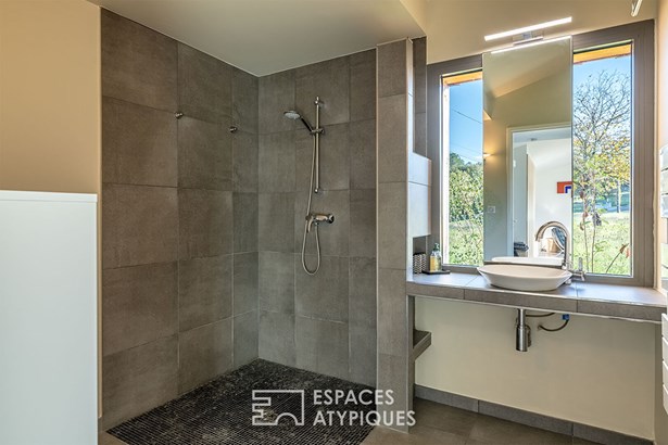 The atmosphere is soft, contemporary and conducive to relaxation. In fine weather, the south-facing terrace naturally extends the living spaces and invites you to enjoy the surrounding nature, in absolute calm.