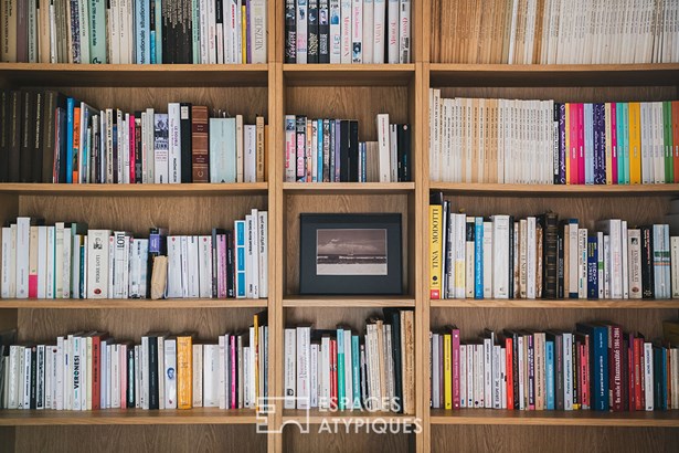 The main living space includes a modern, fitted and equipped kitchen, opening onto a warm living room, decorated with discreet and clever built-in storage.