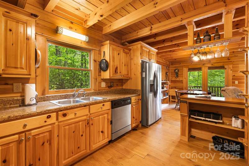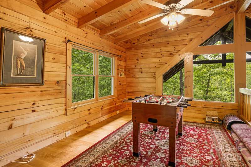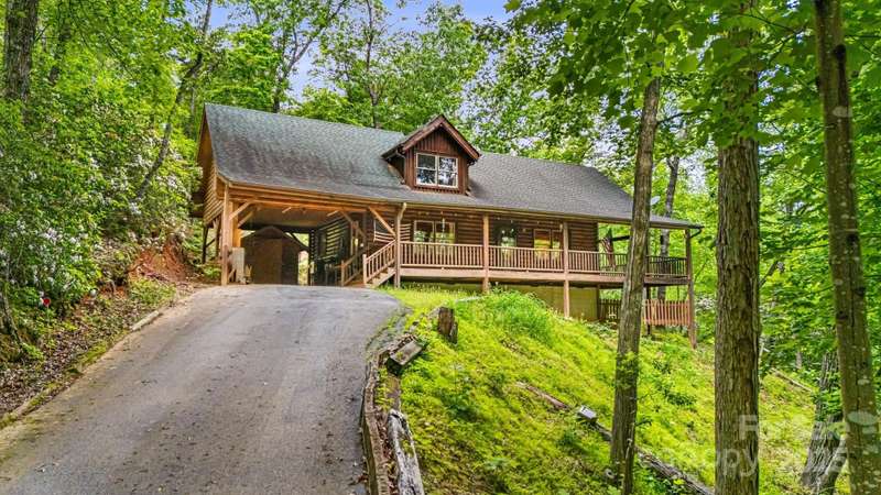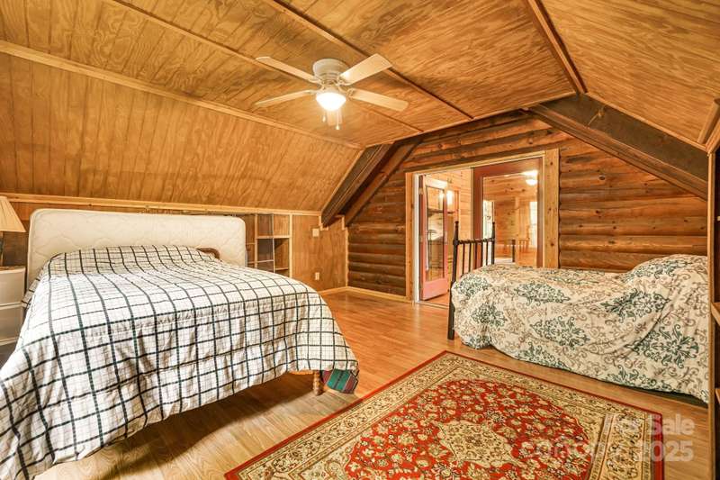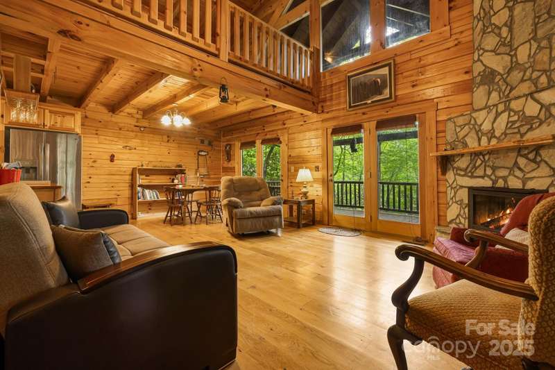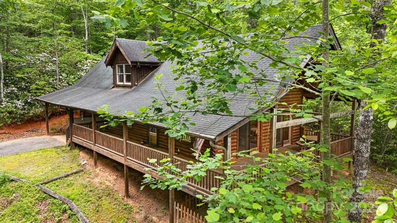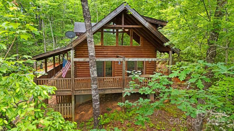 Escape to the mountains in this charming 2-bedroom, 2-bath log cabin located in the highly sought-after Riverbend at Lake Lure community. With an extra room, spacious loft, and open-concept layout, this home is perfect for full-time living, weekend getaways, or a lucrative short- or long-term rental opportunity. Step inside to find warm wood interiors, a stunning stone fireplace, and soaring ceilings that bring in natural light. The home comes fully furnished, including dishes, linens, washer, and dryer-just bring your suitcase! Outside, enjoy peaceful mornings on the covered rocking chair front porch or entertain guests on the covered side porch. Additional features include: paved driveway, carport and storage shed, private community lake, sandy beach, dock, and river access, pavilion, and scenic walking trails. Whether you're looking for a cozy retreat or a turn-key investment, this cabin offers rustic charm and modern convenience in a serene mountain setting. Only a few minutes away from Lake Lure, restaurants, grocery store, hiking trails, and gas station. The two private lakes in the neighborhood are spring fed and not affected by Lake Lure Helene damage.