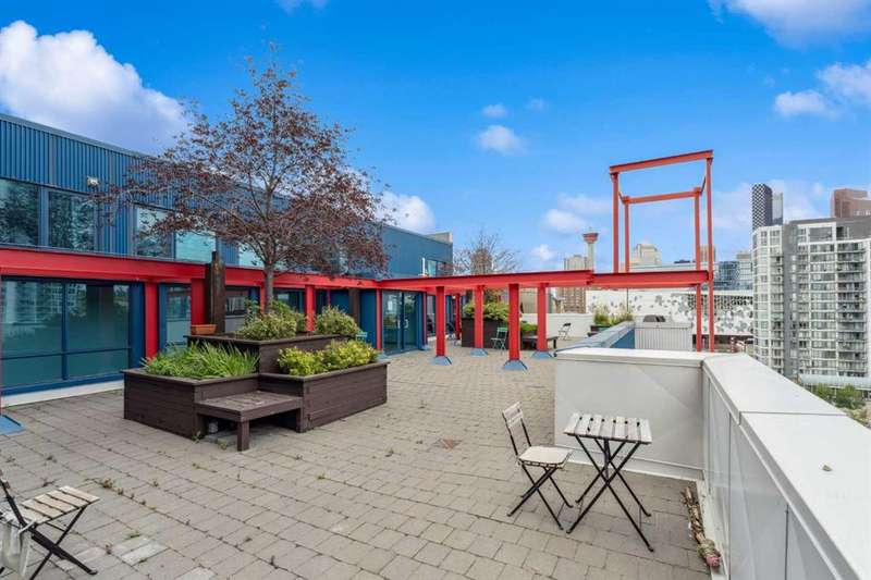 Welcome to Orange Lofts, where urban style meets unbeatable location. This spacious top floor loft offers over 800 sq ft of open concept living, complete with 16 foot ceilings and a striking south facing wall of windows that floods the space with natural light while showcasing views of the new arena. Designed with an industrial flair, this home features polished concrete floors and walls and a flexible open layout, perfect for both everyday living and entertaining. The sleek kitchen offers ample workspace and flows seamlessly into the living and dining areas, while the loft bedroom overlooks the airy main floor. Enjoy the convenience of in suite laundry Additional features include one titled underground parking stall and access to the building’s amenities in one of Calgary’s most vibrant downtown locations. Steps from the river pathways, dining, nightlife, and the excitement of the arena district, this loft offers a rare blend of style, size, and location.