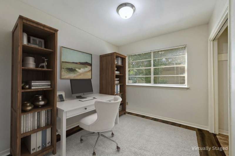 Seller is offering up to $4,250 cash back to the buyer at closing. Use it to buy down your interest rate or whatever you want! Enjoy South Austin in this charming home on a generously sized lot in a lovely neighborhood where folks still wave and chat with passersby. Enjoy evening walks on the shady streets or hang out with friends in the backyard surrounded by beautiful, mature trees. Warm up next to the firepit on the chilly fall and winter evenings. This home is a blank slate ready for your personal touch. Three bedrooms offer flexibility for a guest room or home office. Bonus room is perfect for a home gym, yoga studio, or meditation room. Or make it into your very own man cave or she-shed. Washer/dryer hookups are just off the kitchen in the pantry area. The kitchen island is not fixed to the floor allowing you to move it to your desired position. Solar screens are available for every window for extra heat deflection in the summer and offer a little extra privacy. Conveniently located to so much of what Austin has to offer. Close to Leroy & Lewis BBQ, Central Market, Joslin Neighborhood Park, Recess Pickleball, Radio Coffee, Sagebrush, Little Darlin’, and other great restaurants and nightlife. Easy access to I-35, TX-71/US-290, MoPac, and US-183. Only minutes to Downtown, Zilker Park, Barton Springs, or the Airport! This home has so much potential.