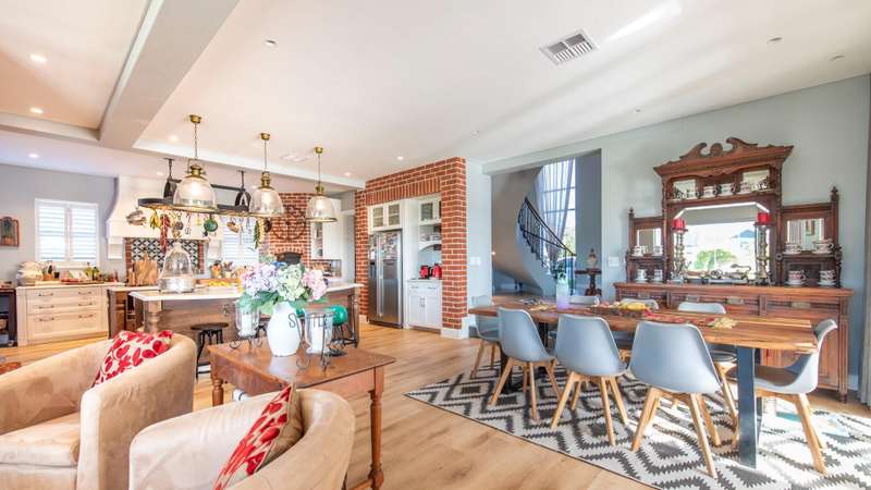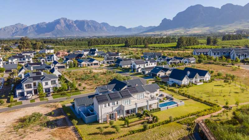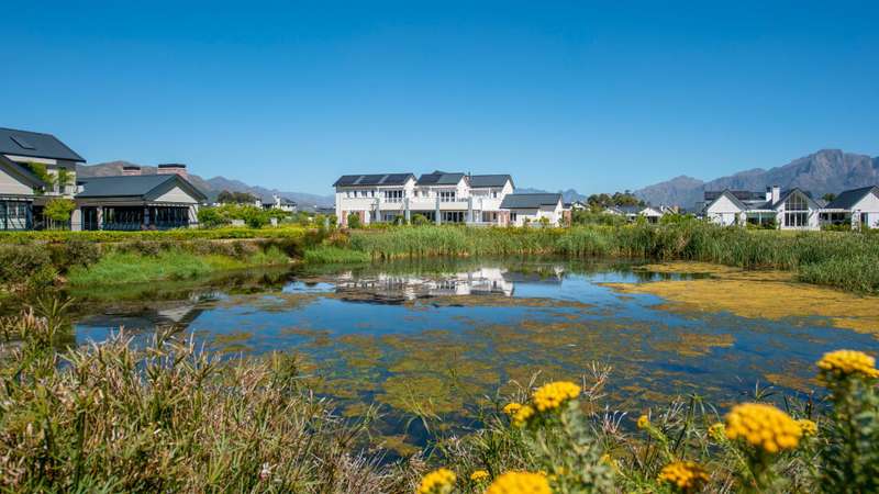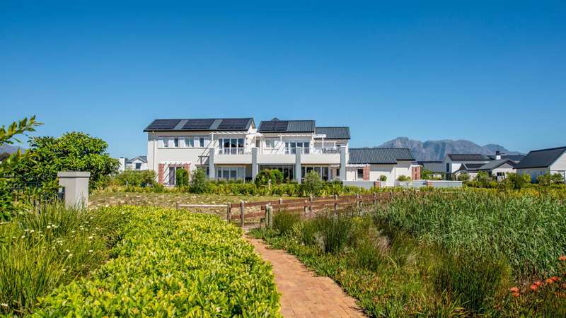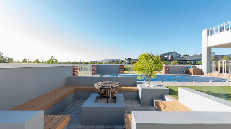 Exclusive joint mandate This exquisite North facing residence is ideally suited for a large family and offers unparalled and captivating views over a dam, parklands and the Paarl mountain ranges. With multiple living spaces on offer, everyone will feel at home in this wonderful abode. Features making this a standout home include the 4 garages with ample storage, huge office with mini kitchenette and toilet , multiple wood burning fireplaces throughout, a water filtration system, an exceptional amount of additional storage options on offer, and an entirely separate flatlet with its own entrance. There is also separate outside shower and toilet. The homely kitchen is equipped with the best in finishes and boasts a built in pizza oven and a feature wine cellar. Perfect entertainment options are offered from the glass enclosed sunroom to the impressive bar which connects via a serving hatch to the outside patio, making way to a private garden with swimming pool and braai pit. Two sweeping staircases guide you upstairs to a large family pyjama lounge and 3 en-suite bedrooms. The master suite is truly impressive, with his and her dressing rooms, an additional lounge or study area, generous storage and a wood burning fireplace. Not to mention world class views! The 4th guest bedroom is situated downstairs. Back-up power is facilitated by 24 solar panels, and a 6 KVA inverter with 20 KWh Lithium Ion batteries Discover the perfect combination of luxury and family living in the La Vue neighborhood on Val de Vie Estate.