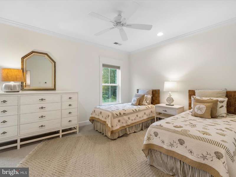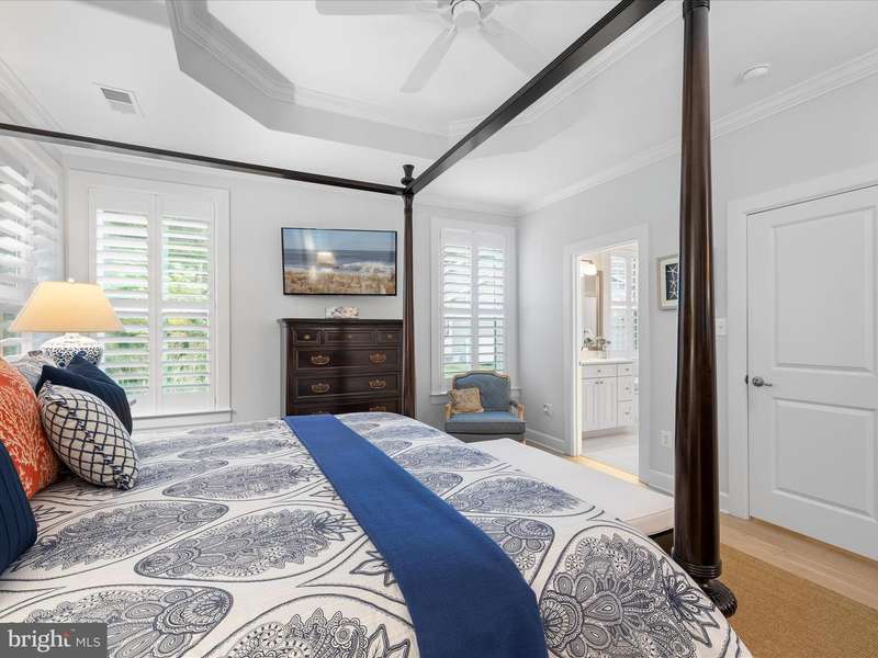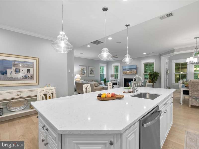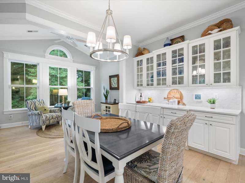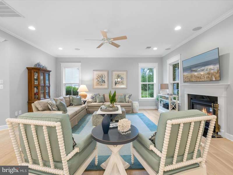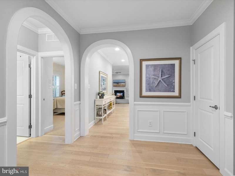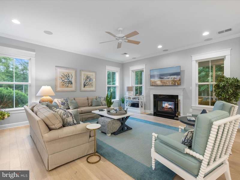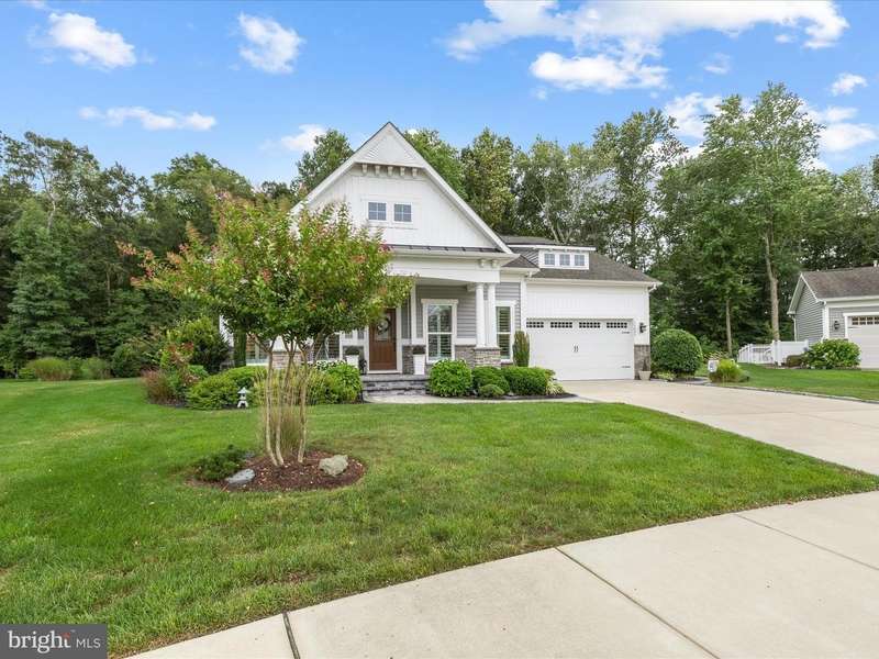 Experience the pinnacle of coastal living in this extraordinary residence, set on a premium homesite in The Estuary-an amenity-rich community just minutes from the resort towns of Bethany Beach and Fenwick Island. Welcome to 33453 Old Pier Lane, a home where timeless design and coastal sophistication meet custom craftsmanship. Every detail has been thoughtfully curated, with precise, one-of-a-kind millwork showcased throughout, from arched wood-trimmed passthroughs and elegant crown molding to bespoke built-ins, setting this home apart as truly exceptional. This four-bedroom, three-bathroom retreat is designed for both refined living and effortless entertaining. At its heart lies the gourmet kitchen, appointed with professional-grade stainless steel appliances, expansive Quartz countertops, a custom hood vent, deep walk-in pantry, and central island with breakfast bar. A built-in buffet with display cabinetry enhances the dining area, perfect for casual meals or hosting gatherings. The inviting living room centers around a cozy two-sided fireplace, creating warmth and charm. Step into the sunroom for a quiet start to your day, or gather in the screened porch for cocktails and conversation. Beyond, a spectacular outdoor living oasis unfolds-an expansive custom hardscape patio with multiple zones for lounging and dining, an outdoor shower, and a tranquil semi-private setting backing to trees. A private paver pathway winds to a secluded nook overlooking nature, and a boardwalk bridge leads to one of the community ponds, where local wildlife often makes an appearance. The main-level primary suite offers an elegant retreat with dual vanities separated by a built-in upholstered bench, a spa-like walk-in shower with bench, private water closet, and a custom walk-in closet with organizers. Two additional guest bedrooms and a well-appointed hall bath provide comfort for family and friends, while French doors open to a private office for working from home. Even the laundry room has been elevated into a cheerful, functional space. Upstairs, a spacious loft family room provides privacy for guests, along with a fourth bedroom, and well appointed full bath. Situated just 4 miles from Bethany Beach's boardwalk and 7 miles from Fenwick Island, this home offers easy access to coastal attractions while enjoying the serenity of its setting near the Assawoman Bay State Wildlife Park. You are allowed to fence in your rear yard. Residents of The Estuary enjoy low-maintenance living with lawn care included in the HOA, plus access to a wealth of resort-style amenities: a sprawling pool with covered pavilion, modern clubhouse with fitness center, over 17 miles of walking and biking trails, a scenic lake with fishing pier and kayak launch, tennis, pickleball, and bocce courts, plus a dedicated dog park. With more than 25 active groups-from book clubs to pickleball leagues, life here is vibrant and connected. More than a home, 33453 Old Pier Lane is a masterpiece of craftsmanship and design, offering an inspired blend of coastal elegance, comfort, and community.