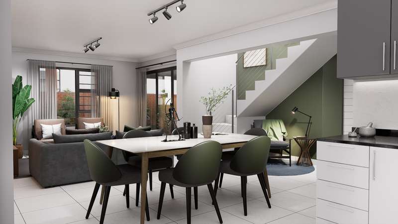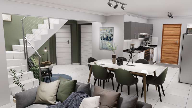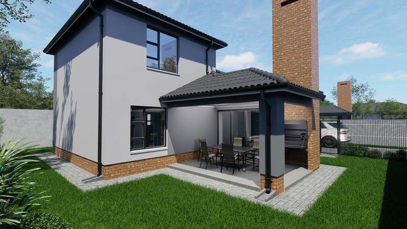 Welcome to a new standard of modern living in a secure, family-focused estate in the heart of Theresapark. This full title home offers the perfect blend of space, comfort, and style on a 305 sqm stand, featuring 169 sqm of thoughtfully designed living space. Semi-Double-Storey Comfort & Privacy Upstairs, you'll find a luxurious main bedroom complete with a full ensuite bathroom and double vanity, along with a versatile study or pyjama lounge – ideal for work-from-home or a private retreat. Functional Layout for Family Living 2 generously sized bedrooms downstairs sharing a full bathroom Open-plan lounge and dining area opening onto a covered patio with a built-in braai – perfect for year-round entertaining Stylish kitchen with Quartz countertops and a premium 4-burner gas stove – designed with convenience in mind Built for Your Lifestyle Choose between a double garage or double carport A 1.8m high boundary wall and pedestrian gate for added privacy and peace of mind Family-Friendly Estate Features Landscaped communal garden space Children’s play area for carefree outdoor fun Energy-Efficient & Cost-Inclusive Includes a 200L solar flat panel split system for energy-saving hot water No hidden costs – all inclusive of: NHBRC registration VAT Attorney & admin fees Interim bond interest Water & electricity connection fees & deposits Finishes Tailored to You Your choice of: Floor tiles, kitchen cupboards, splashbacks & countertops, built-in bedroom cupboards, bathroom wall tiles & vanities Exciting progress on site! ? Estate roads are now complete, making access smooth and convenient. Inside the show house, tiling has been completed, and bedroom cupboards are fitted. Work is currently underway on the kitchen installation, bringing us closer to the final finish. Stay tuned for more updates as we move towards showcasing the completed unit!