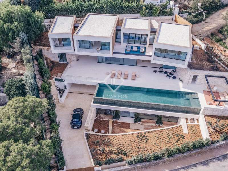 This brand-new villa boasts stunning ultra-modern design by a renowned architect, providing unique views and orientation from every room, as well as private terraces and a variety of delightful areas to relax. With five bedrooms and six bathrooms, the villa provides ample accommodation for the family and guests. Vast exterior space has been planned for maximizing outdoor enjoyment of this corner property that offers unobstructed treetop forest views as well as sea views towards Formentera Island. Abundant terraced space and an underground parking complete the property.