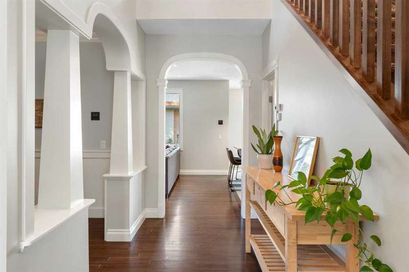 Nestled in the vibrant community of West Hillhurst, this beautifully maintained home sits on a generous 37.5 ft lot and features a rare triple-car garage, a charming front porch, and a fully developed basement—offering space, style, and functionality for the whole family. Step inside to a spacious foyer that opens into a bright front den, perfect for a home office or cozy library. The formal dining room is ideal for entertaining, while the modern kitchen boasts full-height cabinetry, granite countertops, stainless steel appliances, a walk-in pantry, and a sunny breakfast nook. The inviting living room features custom built-ins and a gas fireplace, creating a warm and welcoming space. Upstairs, you’ll find three generously sized bedrooms, including a primary suite complete with a large walk-in closet and a 4-piece ensuite, a standalone tub, and a tiled walk-in shower. A convenient upstairs laundry room adds everyday ease. The finished basement offers incredible versatility, with two additional bedrooms (one currently used as a music room), a spacious family room perfect for movie nights, a 4-piece bathroom, and storage. Enjoy summer days in your private backyard, featuring a deck and green space, ideal for outdoor dining and relaxing. Additional highlights include newer air conditioning, updated windows, and a location just minutes from the Bow River pathways, downtown Calgary, schools, dog parks, and the vibrant amenities of Kensington. This home is the perfect blend of comfort, convenience, and community living—don't miss your chance to make it yours.