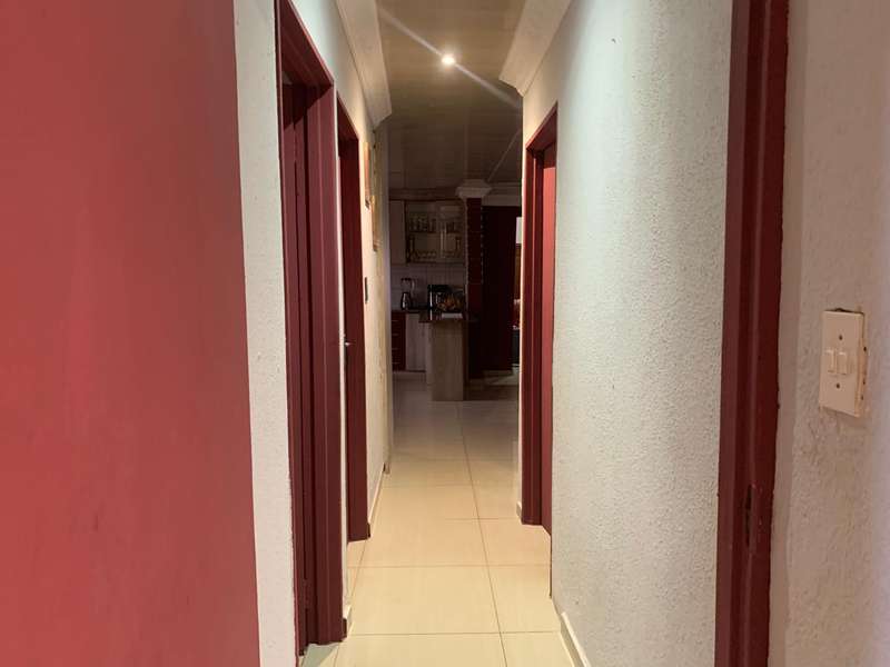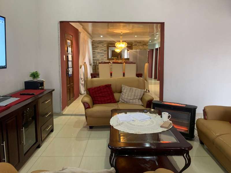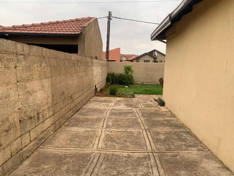 This beautiful house is waiting for a new family to occupy it. It has 3 spacious bedrooms, the main bedroom has an en suite and there is a full family bathroom. The kitchen has modern cupboards with ample storage space and it has an open plan dining and living area. The open plan makes is viable for the days you entertain friends and family. The house has beautiful lights including ceiling down lights. Outside you find a beautiful garden space and some paved areas which gives the home a very clean look. To view this lovely property contact the agent.