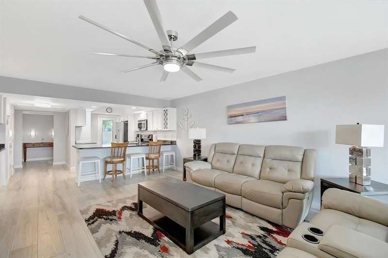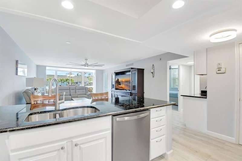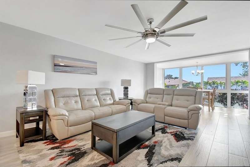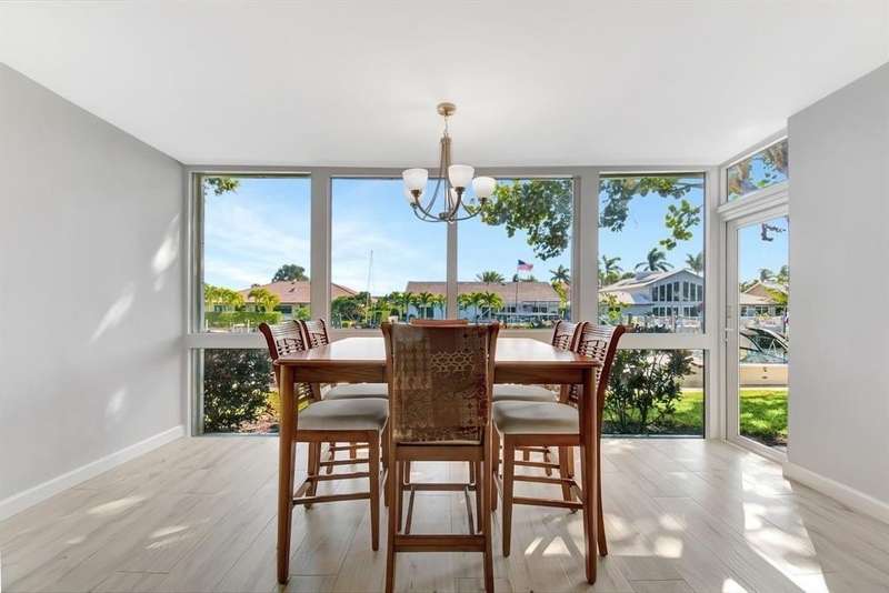 Spacious unfurnished 3BR/2BA 1st-floor corner unit in prime Lighthouse Point location with wide canal views and available boat dockage. This bright, open condo lives like a single-family home and features a split floor plan, impact windows/doors, enclosed patio for extra living space, and new wood-look tile throughout. The open kitchen includes granite counters, white cabinetry, stainless steel appliances, wet bar, and new dishwasher. The luxurious master bath offers a Jacuzzi tub and rain shower. Full-size washer/dryer, newer A/C, and park right at your front door. Set on 17 acres of beautifully maintained grounds, waterfront pool, shuffleboard, clubhouse and with plenty of guest parking. Enjoy waterfront living in this updated, move-in ready home — and enjoy the best of LHP!