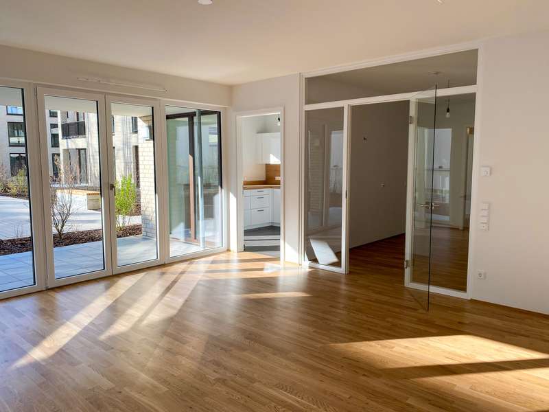 This as-new first floor apartment impresses with a combination of modern furnishings, spacious areas and an attractive location. The residential complex was completed in 2020. With approx. 92.73 m² of living space, the apartment offers plenty of room and a well thought-out floor plan and is suitable for singles and couples. The apartment is currently rented - the monthly basic rent is €1,300, plus €135 for the underground parking space. Upon entering the apartment, you enter an inviting hallway that divides the apartment into a private and public area. The heart of the property is the spacious living and dining area with open-plan kitchen. The floor-to-ceiling, triple-glazed windows provide an unobstructed view of the terrace and the garden area for exclusive use. With a total area of approx. 122 sqm, the spacious terrace and garden extend the living space outdoors in the warmer months and are particularly suitable for relaxing hours in the countryside. The modern fitted kitchen is perfectly integrated into the room and offers a pleasant cooking experience thanks to high-quality appliances and plenty of storage space. A spacious bedroom provides you with a retreat that promises peace and relaxation. You can easily store your clothes in the dressing area in front. The daylight bathroom is equipped with a bathtub and a floor-level shower and thus offers a contemporary level of equipment. A separate guest WC provides additional comfort in everyday life and for visitors. Oak parquet flooring is laid in all living areas, creating a pleasant atmosphere. The underfloor heating provides cozy warmth on cold days and can be individually adjusted. Electric external roller shutters on all windows allow convenient control of the light and a high degree of privacy. The energy efficiency class B underlines the modern, energy-optimized construction standard of this apartment. The apartment includes a private cellar room with additional storage space. A parking space is available in the underground garage for the safe parking of your vehicle. The parking space is equipped with a wallbox and enables easy charging of an electric vehicle. The monthly house rent is €355.89 and already includes heating costs and the maintenance reserve. The excellent location combines a pleasant living atmosphere with quick access to all important infrastructural facilities. Schools, shopping facilities and local recreational areas are all within a short distance - ideal for working singles or couples. In summary, this property offers a contemporary living experience, a well thought-out room layout and modern fixtures and fittings that make everyday life easier. The apartment is in mint condition and offers a wide range of possibilities - whether for owner-occupation or as a high-yield rental option.