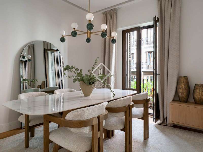 In the heart of the historic Palacio neighbourhood , you will find this spectacular, fully renovated property with a contemporary design that perfectly combines the classic charm of La Finca with the high specification and modern amenities. Located in an elegant classic building , with only two neighbors per floor, this property offers the privacy and comfort of an exclusive property in the centre of Madrid. The property, with its high ceilings, has been completely renovated using top-quality materials and exquisite attention to detail. It features four bedrooms, two with en-suite bathroom , plus a third full bathroom . The day area comprises a spacious and bright living-dining room with large windows, and a designer kitchen fully equipped with Siemens appliances . Underfloor heating heating throughout the property ensures maximum comfort year-round. It is sold fully furnished, with designer furniture and careful decoration that highlights the elegance of each room. A unique opportunity to enjoy an exclusive home in one of Madrid's most emblematic and charming areas .