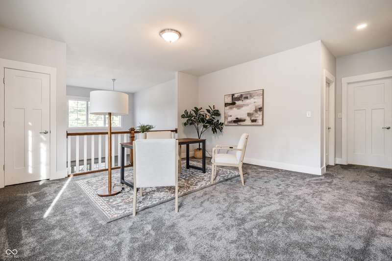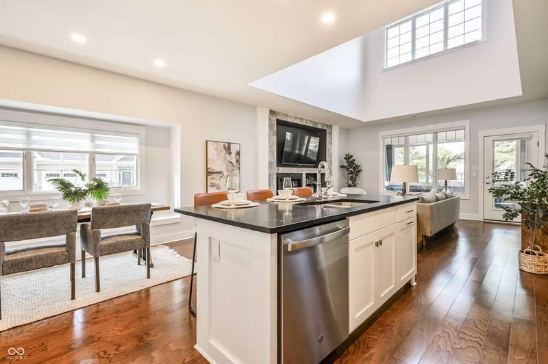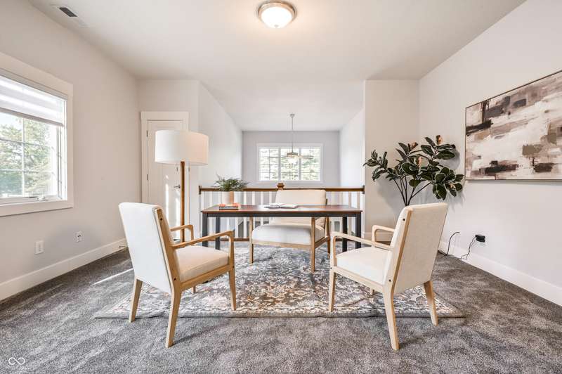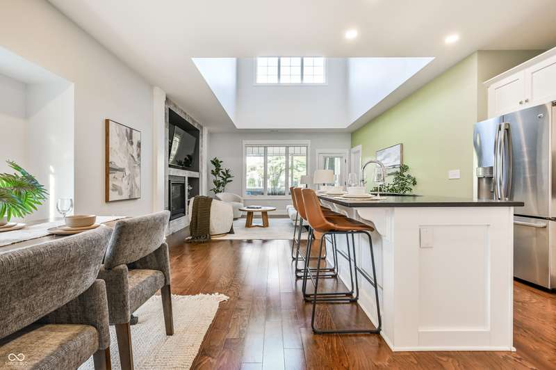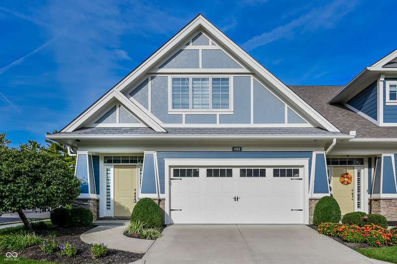 Welcome to 488 Chimney Rock Drive at The Cottages of Carmel! This condo is an end unit and the first thing you will notice when you enter is all the beautiful light. The very next thing you will be the incredible cathedral ceilings. The open layout offers so much comfortable living space with the primary bedroom suite conveniently located on the main level and a large loft/flex space and 2 additional bedrooms on the second. Enjoy the 3 seasons room in the warmer months and get cozy by fireplace when its cooler. Updates include newer carpeting throughout bedrooms and 2nd level loft (upstairs areas have never been lived in), new dishwasher, tankless water heater, and updated landscaping. This home has been well cared for and is in pristine condition. The Cottages at Carmel are just minutes from the Arts & Design District, Monon Trail, The Palladium, The Carmel Farmers Market, and more. It is set in a low maintenance community that takes care of lawn care, mulch, sprinklers, snow removal, and common grounds. It really is a special place inside and out. You must see this one for yourself!