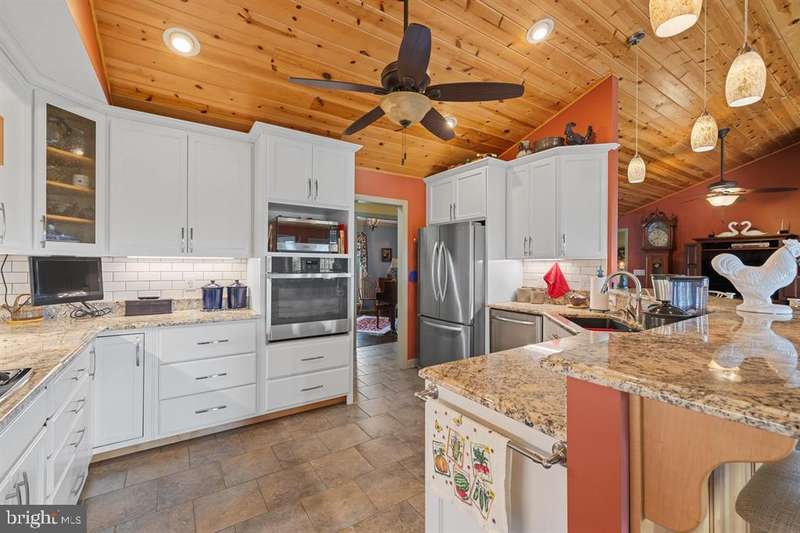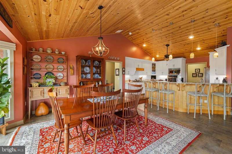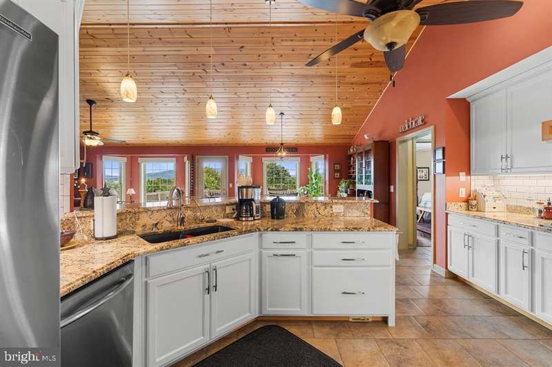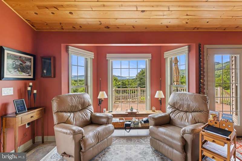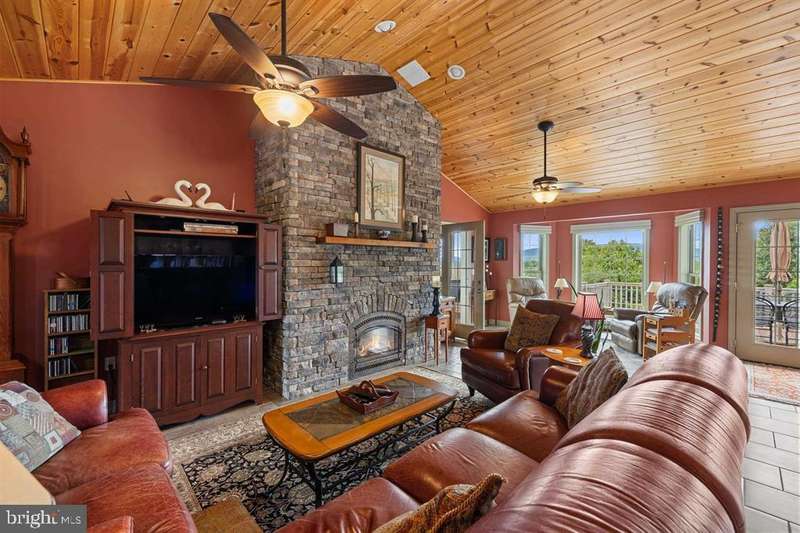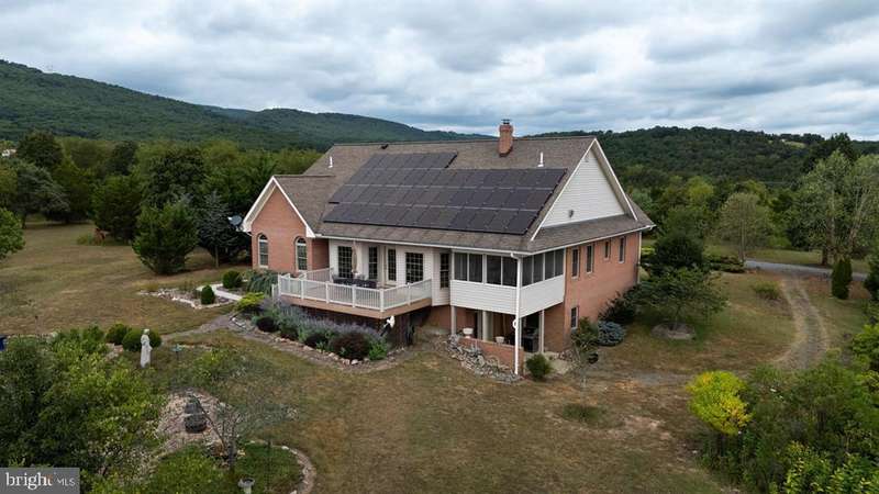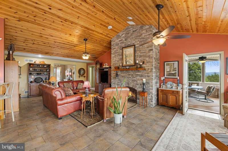 Private 6.36-Acre Retreat with Stunning Panoramic Views! This beautifully maintained 3-bedroom, 2-bath home offers the perfectbalance of comfort, functionality, and privacy. Ideal as a full-time residence or peaceful getaway, the home features a spacious open floor plan with acathedral wood ceiling, a striking stone gas fireplace, and large rear-facing windows that showcase breathtaking views. Enjoy the warmth of wood andtile flooring throughout, an inviting kitchen with informal dining area, and a generously sized laundry room with pantry. The screened-in porch andcomposite deck provide perfect spaces to relax or entertain while taking in the serene natural surroundings. Heating and cooling are covered with a heatpump, mini split, and pellet stove, ensuring year-round comfort. A full unfinished basement offers plenty of storage or future expansion potential. Theproperty includes a 2-car attached garage, a large 24' x 32' detached garage/workshop, and an additional 12' x 20' outbuildingperfect for hobbies, tools, or extra storage. Beautiful landscaping adds to the charm of this private property. The solar system installed in 2019 has generated enough power for the home to eliminate an electric bill since installation.