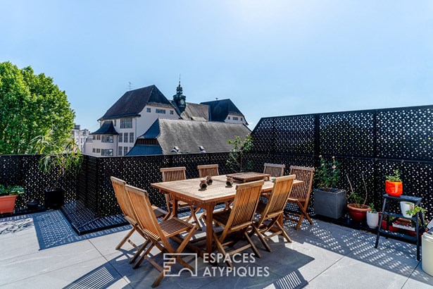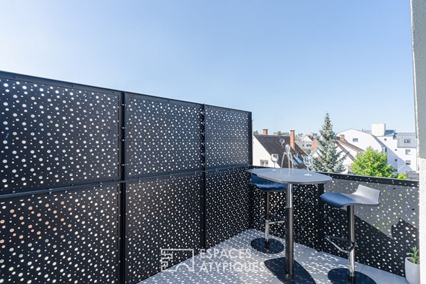 Located on the top floors of a contemporary condominium completed in 2024, this bright 93 m2 Carrez duplex (110 m2 floor space) charms with its contemporary architecture, clean lines and high-end amenities. Nestled in the heart of the sought-after and dynamic Neudorf district, it enjoys a privileged location, close to transport links, shops and green spaces. Its south/north orientation, two terraces and double underground garage make it a rare find on the Strasbourg property market.