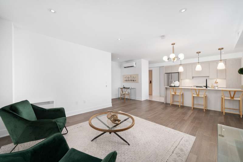 Impeccable condo with fabulous 2 bedroom, 2 bathroom layout. Ample living space with additional office nook, and kitchen with counter seating and stunning butler's pantry. White oak in a light walnut colour and marble-look ceramic flooring throughout. Primary bedroom features a walk-through closet and en-suite bathroom. Indoor parking and a storage locker included! Located in the beautiful Aviva building just a quick 5 minute walk from Fairview Pointe-Claire mall/bus terminus and 10 minute walk to the future REM. Along with various amenities including a gym, sauna, social room, games room and visitors parking.