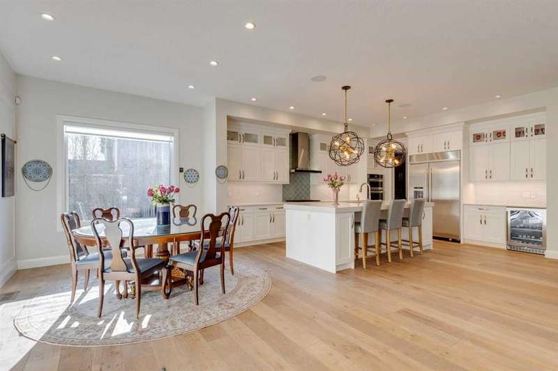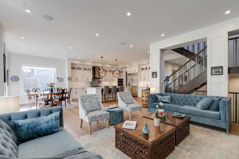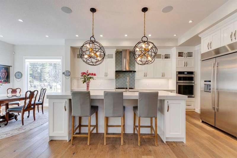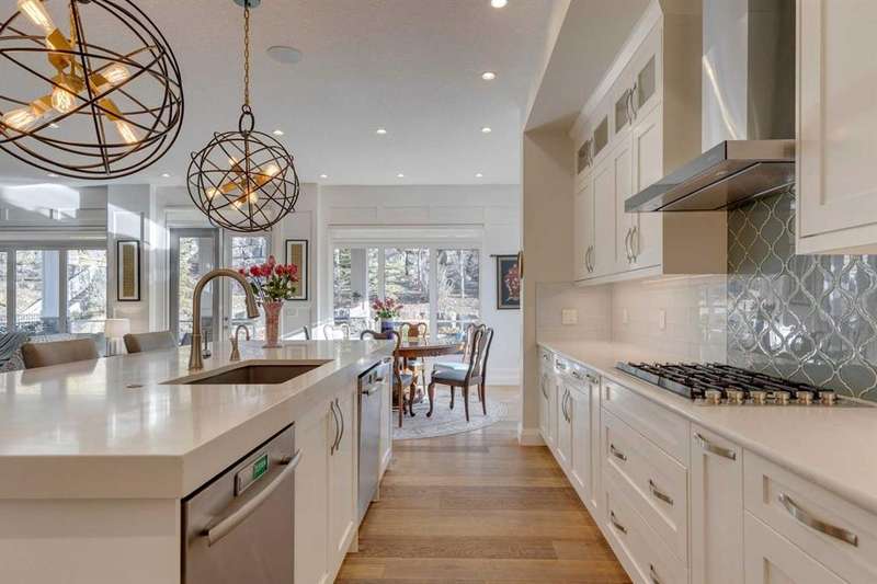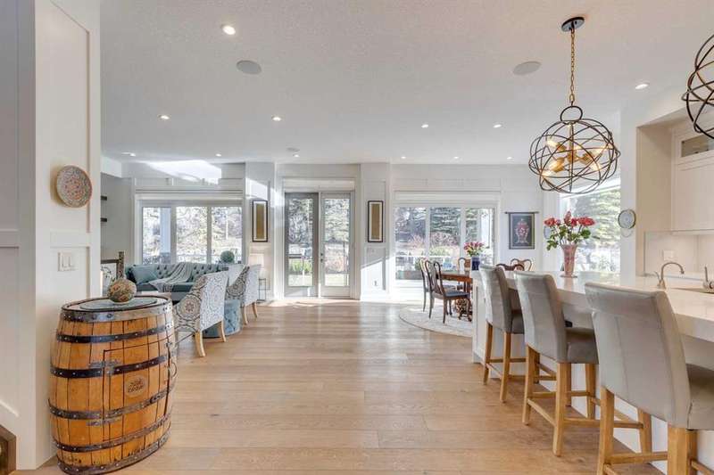 Watermark at Bearspaw - 130 Hillside Terrace: Welcome to this fully developed estate property built by Prominent Homes in the coveted community of Watermark at Bearspaw. Located on a quiet street, this stunning home offers nearly 5,000 sqft of total living space with 5 bedrooms, 4.5 bathrooms, and a heated attached triple-car garage. The bright, open main floor features hardwood throughout and a spacious front entry. The gourmet central kitchen includes quartz countertops, a large island with seating for three, high-end JennAir stainless steel appliances - a gas cooktop, chimney hood fan, dual dishwashers, wall oven, microwave oven, and built-in refrigerator - plus a Silhouette beverage fridge. The separate spice kitchen offers additional prep space with built-in cabinets, a gas cooktop, and a hood fan. Designed for both everyday living and entertaining, the main floor has a generous breakfast nook with space for a large table, a great room with built-ins and a gas fireplace, and a front flex room with barn doors - ideal as an office or sitting room. A 2-pc powder room and well-organized mudroom with a bench, hooks, and plenty of storage complete the level. Upstairs, the southwest-facing primary suite features a large walk-in closet with custom built-ins and a luxurious 5-pc spa ensuite with heated floors, a tiled glass shower, a freestanding soaker tub, dual sinks, and a private water closet. Three additional bedrooms, each with walk-in closets, including one with a private 4-pc ensuite - share the upper level. You will also find a central bonus room with skylight, a 5-pc main bath with double sinks, and a convenient laundry room with sink, folding counter, and linen storage. The fully developed lower level is perfect for hosting, offering a wet bar and island, dishwasher, and beverage fridge, plus a wine room, spacious family room with built-ins, recreation area, a 4-pc main bathroom, and a fifth bedroom with a walk-in closet. Additional features of this home include an alarm system, 2 A/C units, 2 furnaces, speakers throughout the home, solar panels, 220 in the garage for EV charging, and an underground sprinkler system. Relax on the front veranda while the kids play, or escape to the beautifully landscaped backyard with a covered deck. Watermark at Bearspaw is an award-winning luxury estate community featuring a central plaza with a pavilion, BBQs, fire pit, NBA-sized basketball court, outdoor kitchen, and more. Residents enjoy paved pathways winding through ponds, streams, and parkland. Ideally located just minutes from Calgary’s city limits with quick access to Crowchild Trail, LRT/transit, schools, parks, recreation, and the mountains. This exceptional home is perfect for multi-generational or extended families. Call for more information!