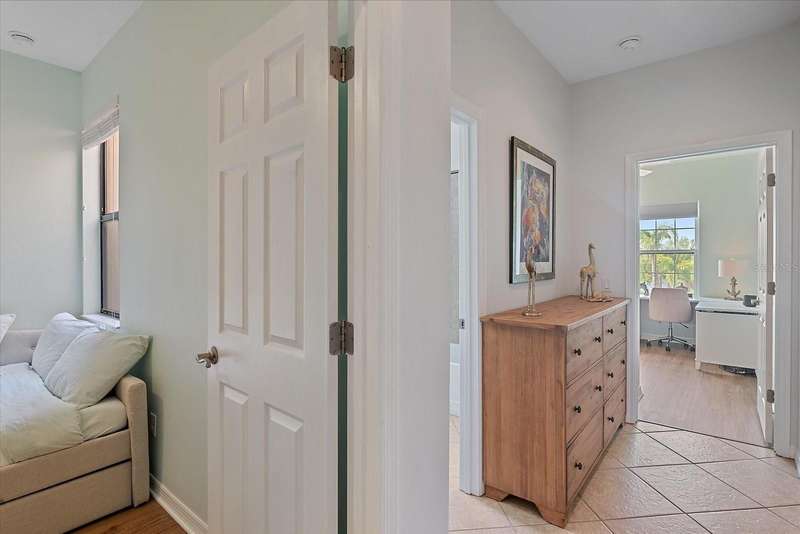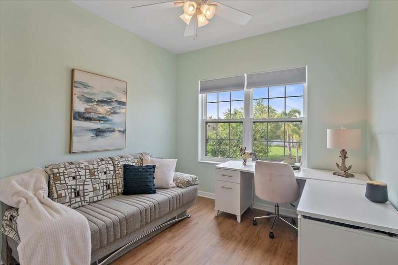 Located less than 5 miles from the most spectacular white sand beaches in the U.S.—including Anna Maria Island, Coquina, Holmes Beach, and Bradenton Beach—this home offers the ultimate in coastal convenience and lifestyle. You’re also just 2 miles from GT Bray Park, one of the area's most sought-after recreational destinations, known for its top-tier pickleball facilities, walking trails, fitness amenities, and year-round community events. Welcome to your dream residence in the highly desirable, maintenance-free community of Palma Sola Trace! In today’s competitive market, this meticulously maintained 2014-built Taylor Morrison townhouse stands out with a perfect blend of comfort, quality, and location. The spacious Carlisle floor plan features 3 bedrooms, 2.5 baths, and 1,627 square feet of smartly designed living space. Step inside to an open-concept living and dining area filled with natural light and breathtaking lake views through oversized windows. The screened-in lanai offers the perfect setting for morning coffee or evening sunsets while enjoying the serene sights and sounds of local wildlife. The kitchen is a chef’s delight, boasting granite countertops, stainless steel appliances, and generous prep space—ideal for both everyday use and entertaining. Just off the kitchen, you’ll find a convenient guest powder room and a one-car garage with built-in shelving for extra storage. Upstairs, the primary suite offers tranquil lake views, a walk-in closet with custom built-ins, and a private bath featuring a tiled walk-in shower. Two additional bedrooms, a shared full bath with a tub, and an upstairs laundry closet with brand-new front-loading washer and dryer add even more flexibility and convenience. Built with concrete block construction, the home includes impact-resistant windows upstairs and hurricane shutters for the sliding doors below, ensuring both safety and energy efficiency. Major updates include a new roof and A/C system in 2023, offering peace of mind and added value. Palma Sola Trace is a pet-friendly, no-age-restriction community with resort-style amenities including a lagoon-style heated pool, clubhouse, fitness center, and playground. With proximity to top-rated schools, IMG Academy, SRQ Airport, medical facilities, GT Bray Park, and endless dining and shopping options, this location is truly unmatched. Don’t miss your chance—homes this well-maintained, updated, and move-in ready are rare!