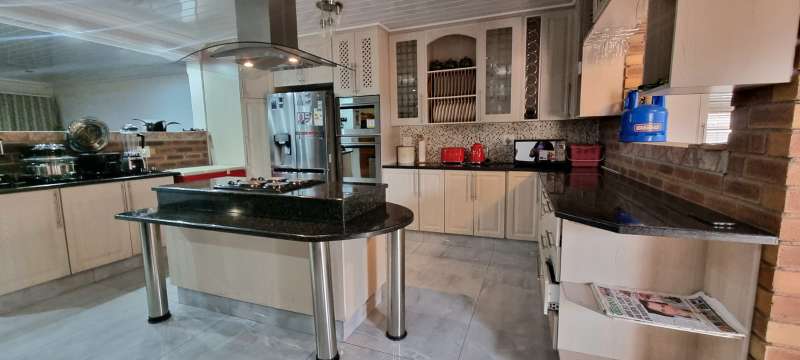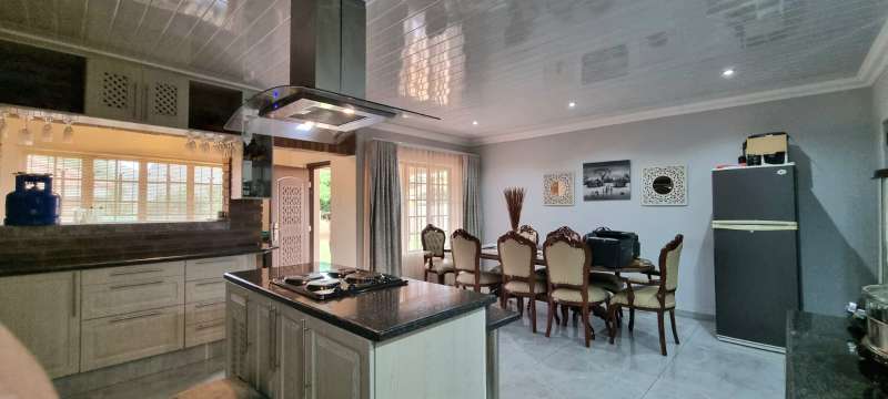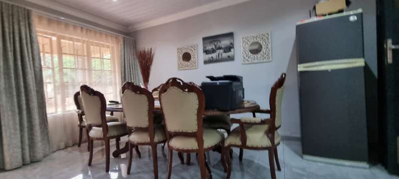 Discover this exquisite property that combines spacious living with charming outdoor features. Ideal for families or those who enjoy hosting guests, this residence offers a perfect blend of comfort and style. This splendid property is designed to accommodate your lifestyle needs while providing a serene and picturesque setting. Whether you're looking for a family home or a versatile space with extra income potential, this property is an excellent choice. Main House Features: Formal Lounge Open-Plan room with: Tv Lounge Dining room Stunning Kitchen with beautiful cupboards & counter-space Scullery 4 Bedrooms with built-in cupboards 3 Bathrooms with 2 bedrooms en-suite Double garage providing ample space for vehicles and storage Equipped Borehole Additional flatlet offering privacy and convenience for guests or potential rental income: 2 Bedrooms (1 is currently used as a laundry room & other a domestic room) 1 Bathroom with a tub, toilet & basin 1 Garage A vast expanse of outdoor space perfect for relaxation, play, or entertaining guests. Enjoy fresh, home-grown fruits with a variety of fruit trees adorning the property. Call me now to view this house & make it your DREAM home Connecting hearts & homes