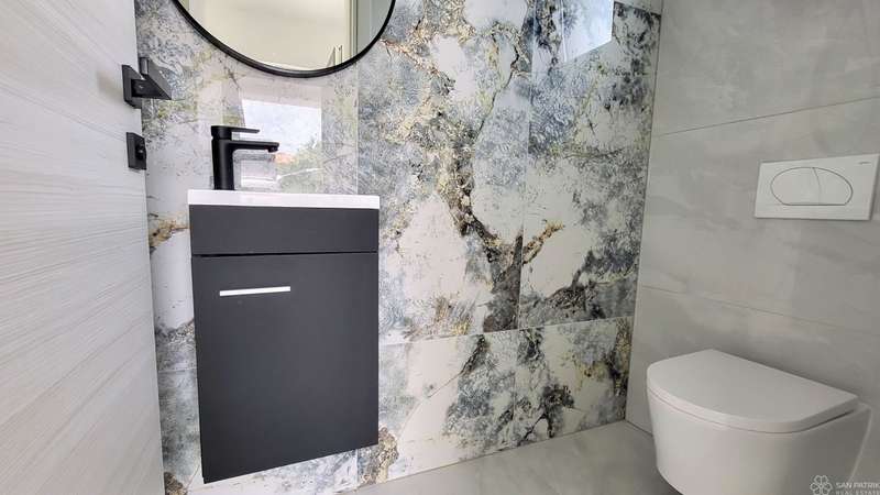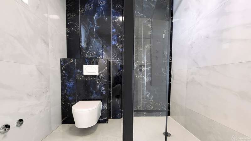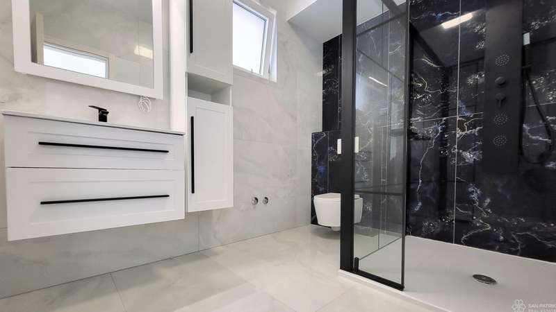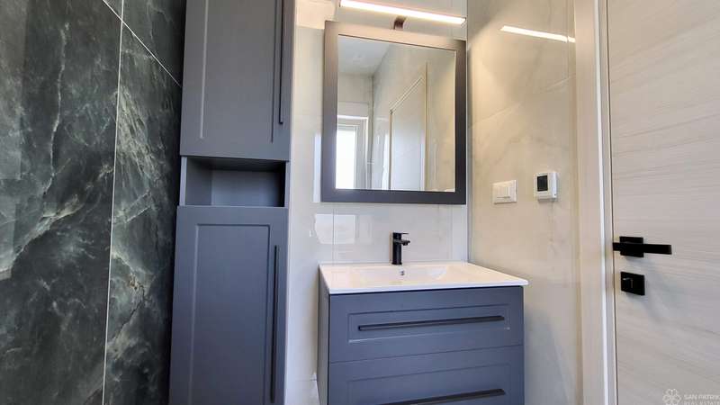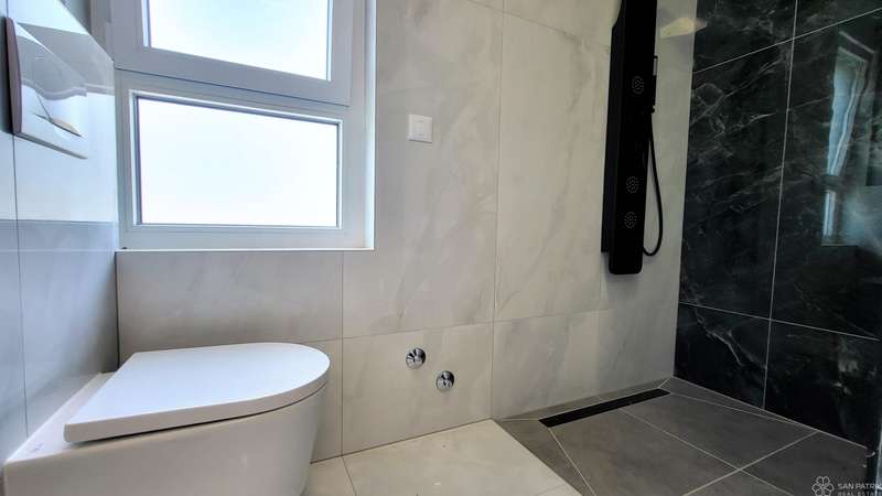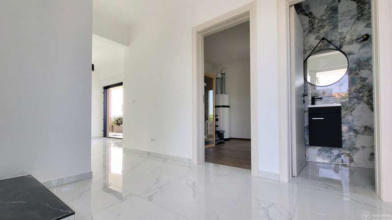 On the ground floor of the villa there is a spacious open-concept living area that includes a kitchen, dining room and living room with access to a covered terrace. On this floor there is also a guest toilet, additional bathroom, modern sauna and storage room. The first floor contains three comfortable bedrooms, each with its own bathroom and access to a covered terrace with sea views. An additional advantage is a separate utility room (laundry room), located on the first floor.