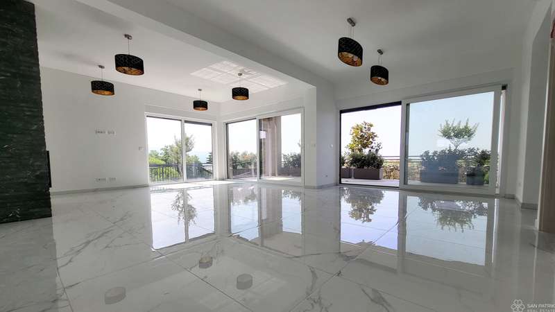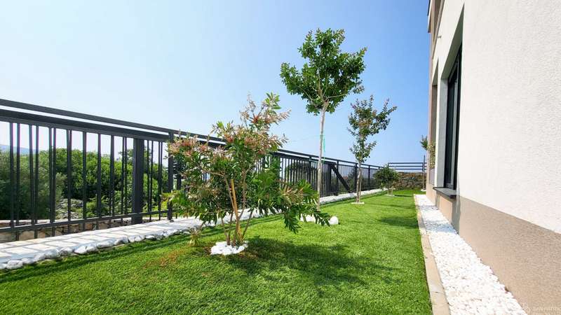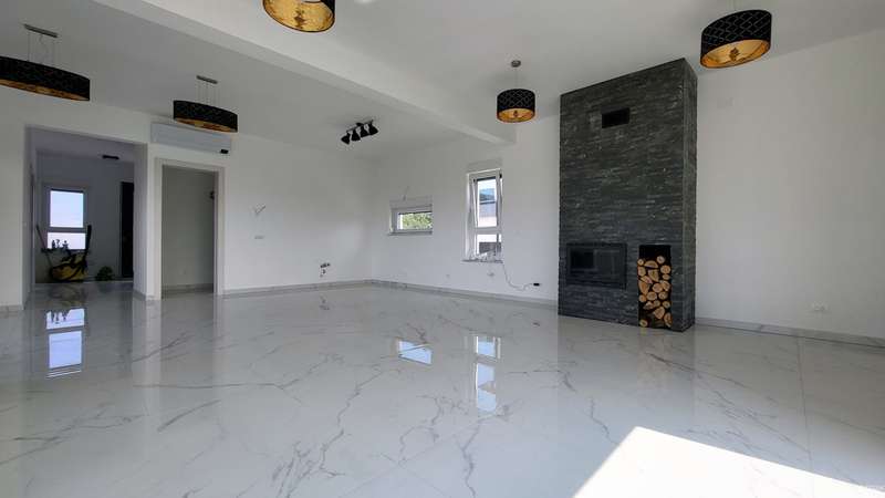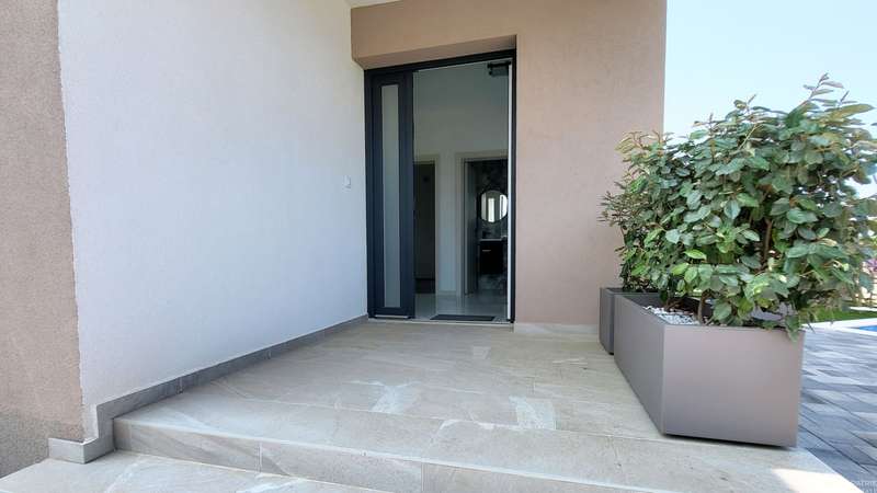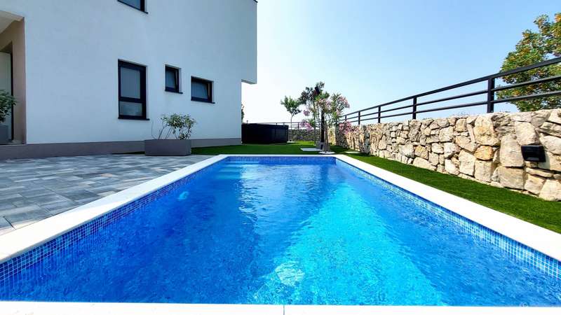 For sale is a modern detached villa located in a quiet and elevated location, near the town of Krk, with panoramic sea views. The plot area is 614 m2, the total living area of the villa is 158,46 m2 and is spread over two floors. The top quality of construction, thoughtful layout of the rooms and modern equipment make this property an excellent opportunity for family life, vacation or investment in tourism.